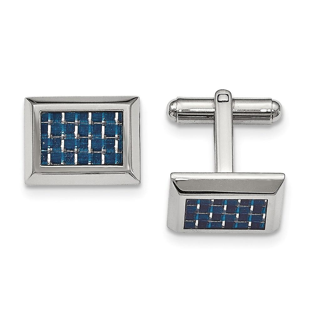Stainless Steel Polished With Blue Carbon Fiber Cuff Links 18mm Wide Cuff Link for Men
