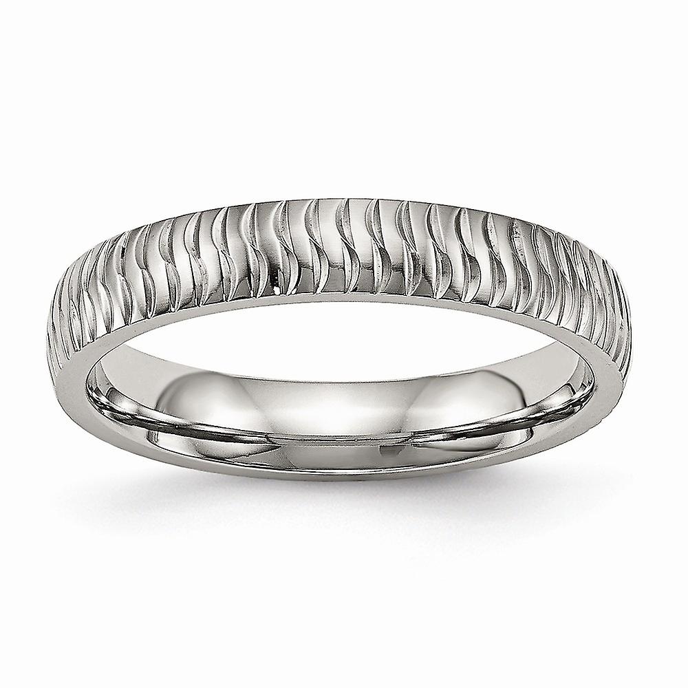 4mm Stainless Steel Polished Textured Ring-Ring for Women - Ring Size: 6 to 13