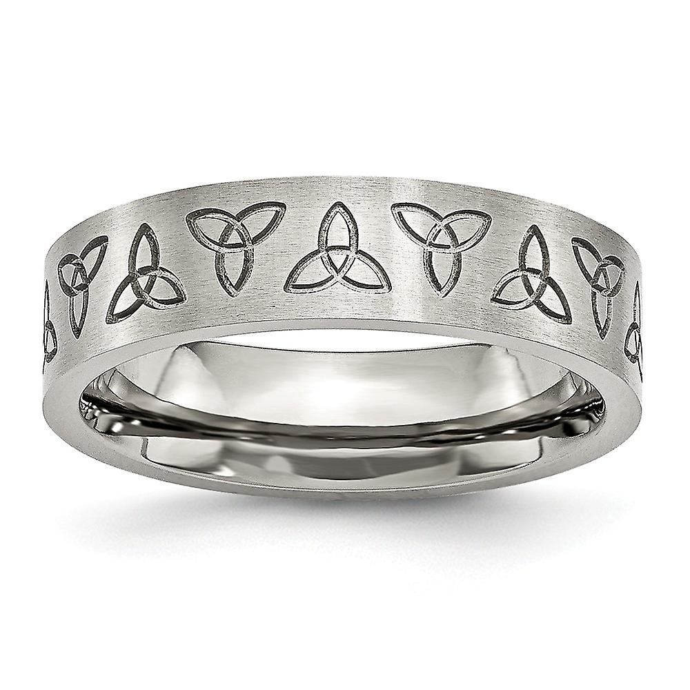Stainless Steel Brushed Engraved Trinity Symbol Satin 6mm Band Ring-Ring for Women and Men - Ring Size: 6 to 13