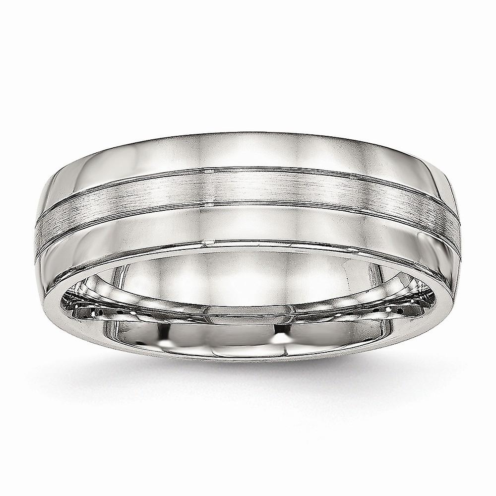Stainless Steel Brushed and Polished Grooved 6.50mm Band Ring Ring for Women and Men - Ring Size: 7 to 13