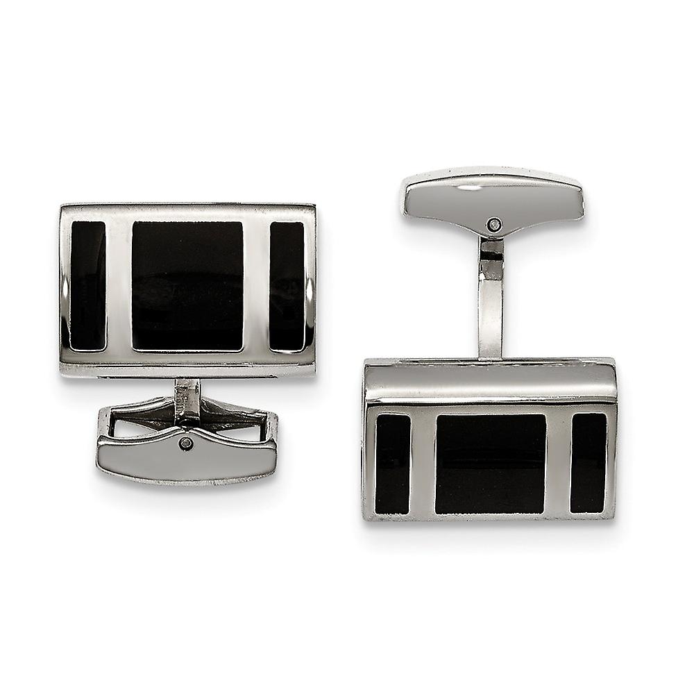 Stainless Steel Polished Black Rubber Rectangle Cuff Links Cuff Link for Men