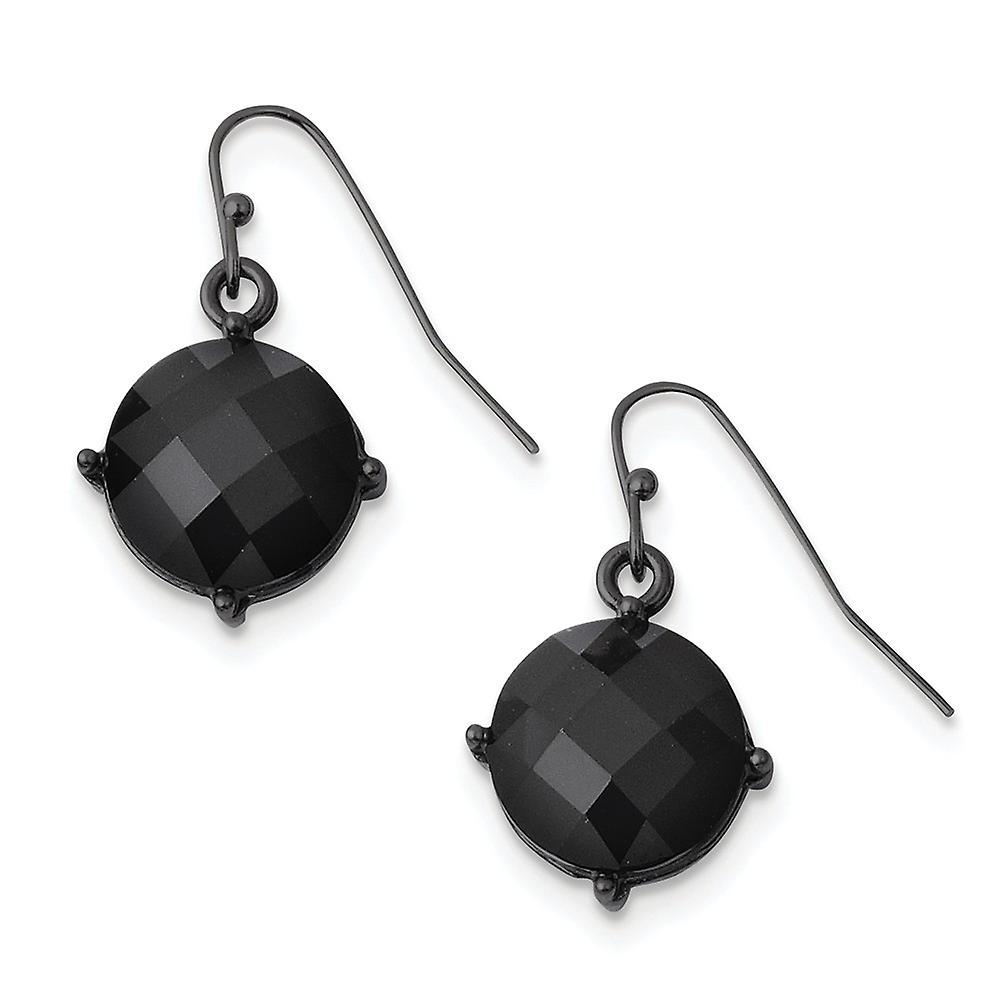 Shepherd hook Black Plated Black Epoxy Stones Long Drop Dangle Earrings 26x15mm Wide Dangle Earring for Women
