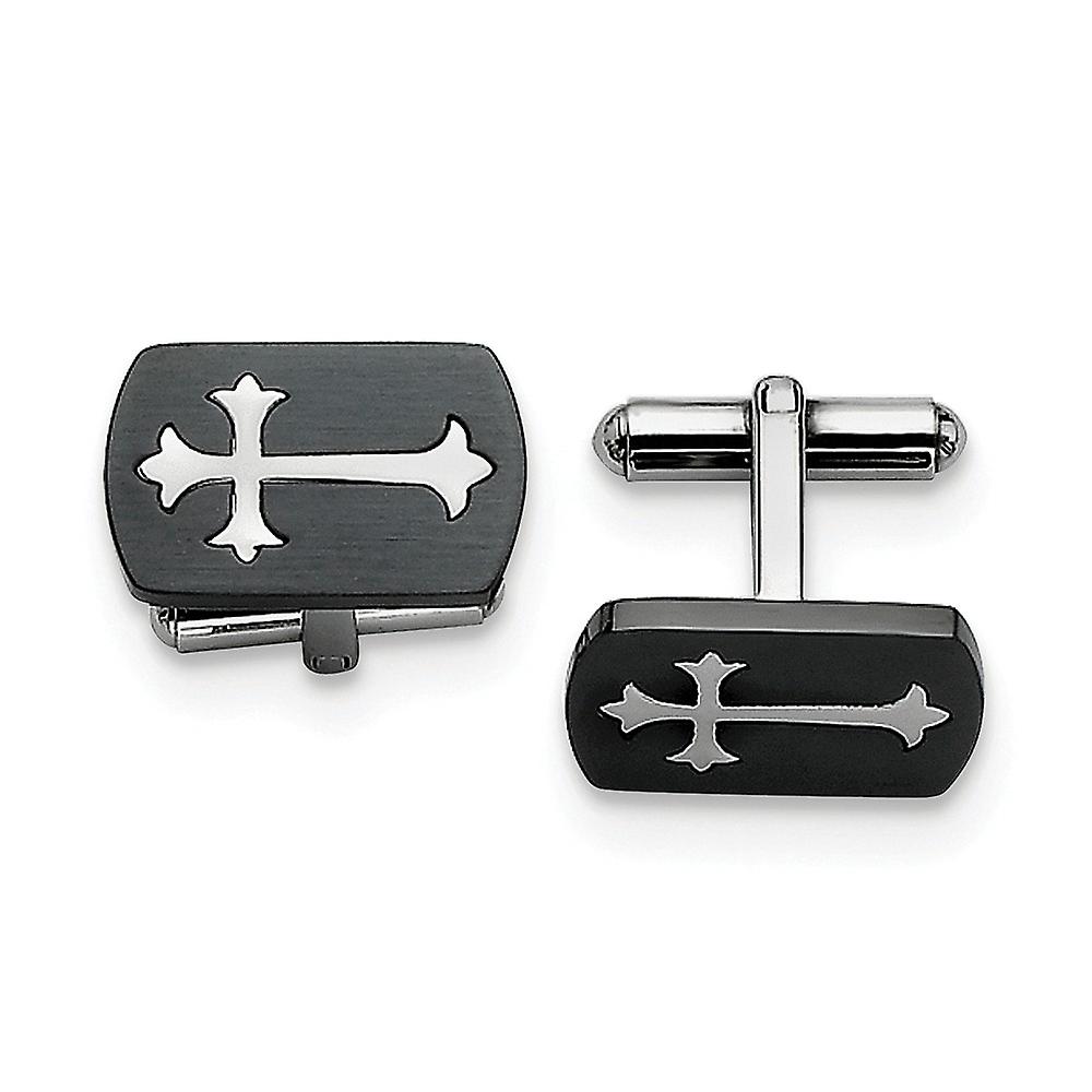 Stainless Steel Brushed Black Plated With Polished Religious Faith Cross Cuff Links 12x20mm Wide Cuff Link for Men