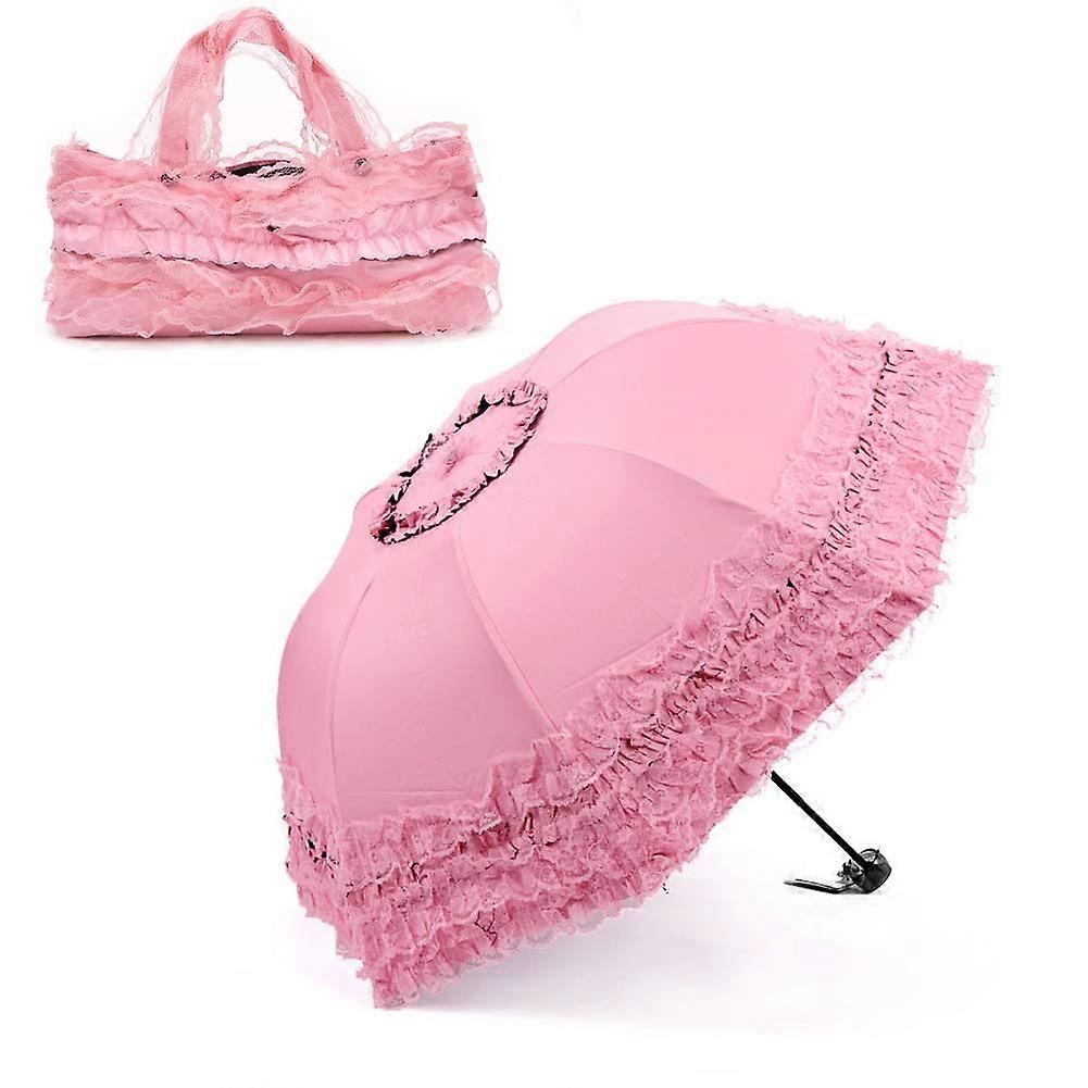 Lovely pink ultraviolet-proof umbrella with a sturdy structure and quality construction. It uses ultraviolet-proof fabric with light transmittance 3 to provide sun protection while allowing some light. The alloy Tiesan bone offers strength and resists rust and deformation. Decorative embroidery and lace add a refined touch. This umbrella is designed for UV protection only and is not suitable for use in rainy days. Key benefits - Strong UV protection: Ultraviolet-proof fabric helps reduce sun exposure during outdoor activities. - Durable frame: Alloy Tiesan bone provides a sturdy structure that resists rust and deformation. - Stylish and refined: Pink color with exquisite embroidery and lace for a tasteful, decorative look. - UV protection only: Not intended for rain or wet weather use. Materials and construction - Fabric: Ultraviolet-proof material with light transmittance 3. - Frame: Alloy Tiesan bone for durability and rigidity. - Finish: Decorative embroidery and lace on the umbrella surface for an elegant appearance. Design notes - Color: Lovely pink - Aesthetic: Environmental decoration with exquisite and delicate embroidery and lace - Function: Purely for UV protection and sun shading Usage and compatibility - Intended use: Personal sun protection during daytime outdoor activities - Weather suitability: Not suitable for rainy days - Care: Designed for UV shielding effectiveness; avoid exposure to wet conditions Suggested scenarios - City and outdoor commute: Use to shield skin from direct sun while walking to work or running errands on sunny days. - Outdoor leisure: Ideal for beach trips, picnics, outdoor cafes, or parks where you want stylish sun protection. - Events and photography: Suitable for outdoor gatherings or photoshoots where a polished, sun-shielding accessory is desired without rain protection needs. Note - This umbrella is designed specifically for ultraviolet protection. Do not use for rainy weather, as it is not intended to be a rain umbrella.