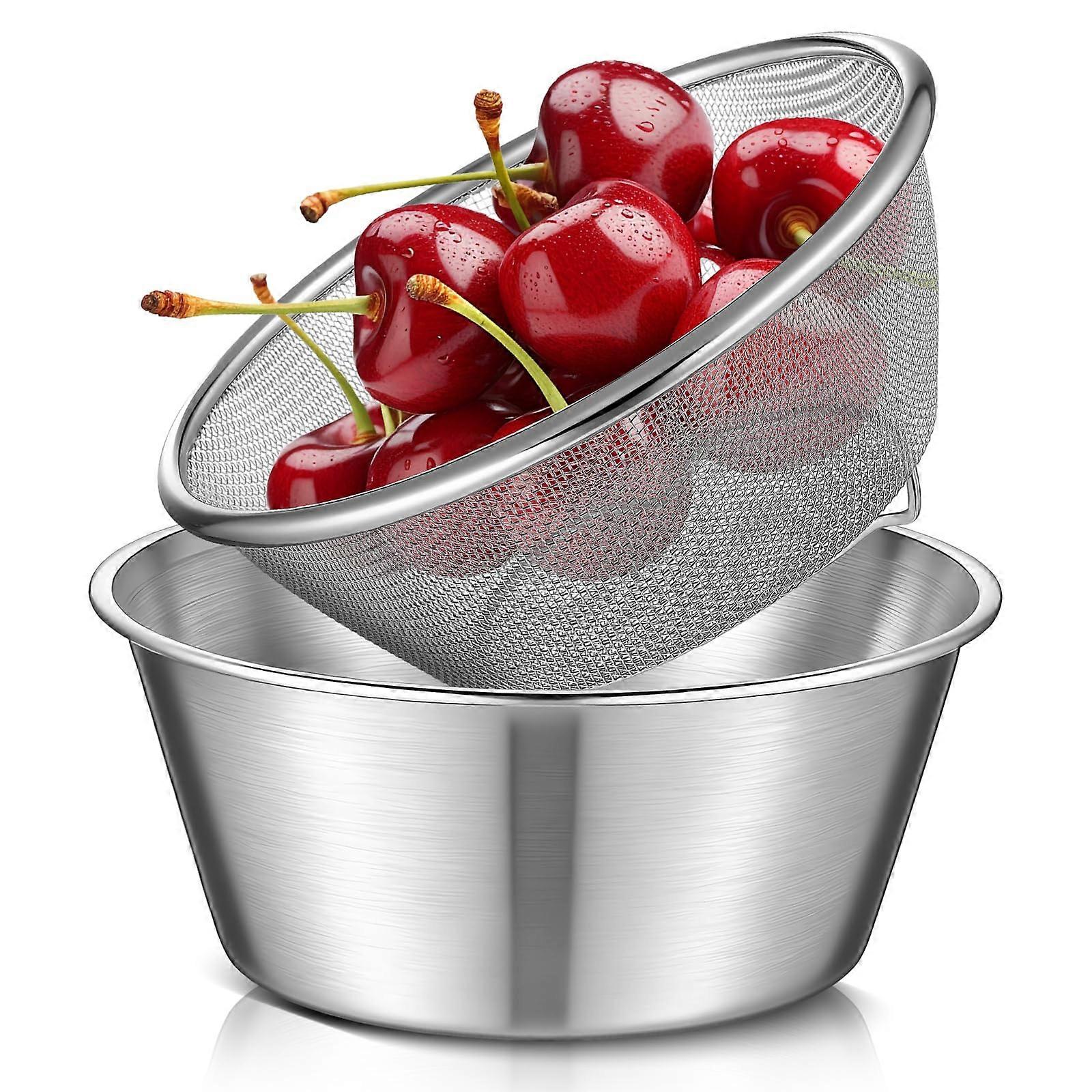 Mini 304 Stainless Steel Colander Strainer - 2-Piece With Mixing Bowl, 6.3 X 2.76 Inches, Fruit And Vegetable Washing