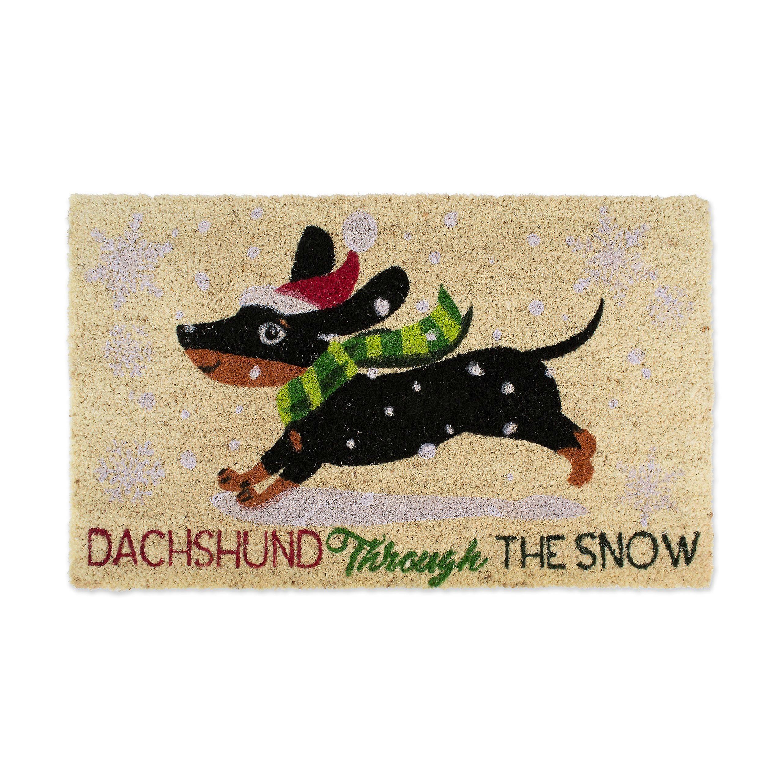 Christmas Coconut Fiber Door Mat Outdoor Cat And Dog Themed 17x29 Snow Dachshund Animal Lovers