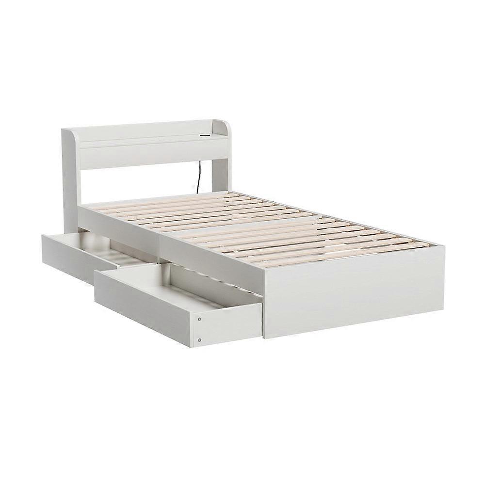 Multifunctional Design Combines Comfort Storage And Convenience Wide Storage Headboard With Ample Space For Nighttime Essentials 2 Built-In Usb Charging Ports For Convenient Overnight Charging 200 Cm Usb Cable Included For Easy Power Access 2 Spacious Drawers With Smooth-Gliding Castor Wheels For Versatile Storage 15 Mm And 18 Mm Thick Particleboard Frame For Enhanced Durability 13 Mm Thick Plywood Slats Provide Strong Support And Noise-Free Sleep Sturdy Centre Support Beams For Added Mattress Stability Space Underneath The Bed For Additional Storage If Needed Smooth-Edge Headboard For A Sleek And Safe Design Compatible With Standard Australian Single-Size Mattresses Simple And Straightforward Assembly Process Specifications: