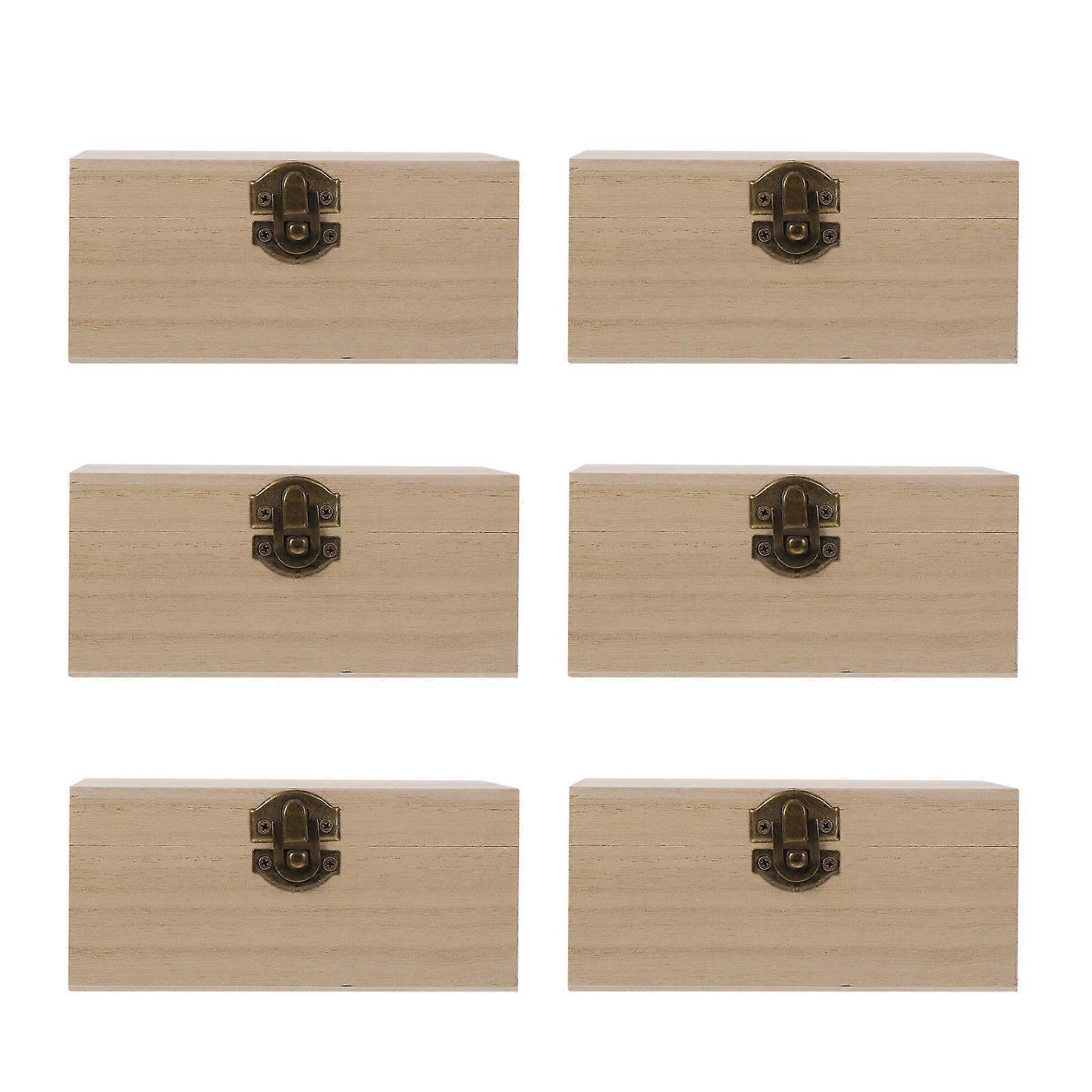 Unfinished Wood Boxes Storage Box Craft Box Home Decoration Light Brown 14x10.5x6.5cm Locking Clasp 6Set