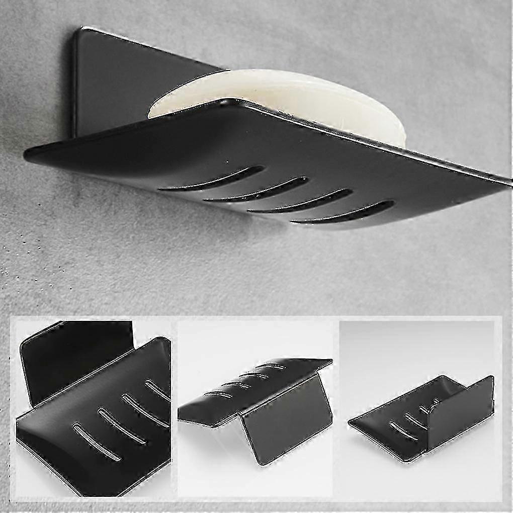 Adhesive No Drill Wall Mounted Soap Dish Holder with Sponge Rack for Kitchen BathroomBlack SZRH