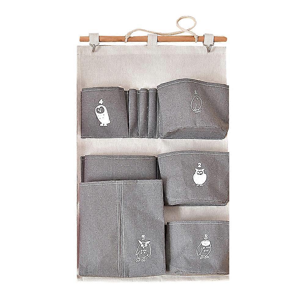 Small Hanging Bag Pockets Wall Organizer Cotton Linen Fabric Grey 58x35cm Organizing Sundries 1Pack