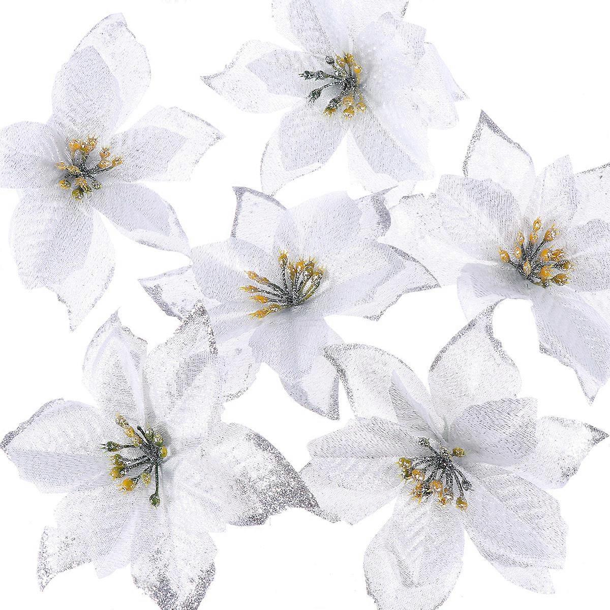 Tree Decoration Flowers Imitation Silver For Christmas Wedding Home Decoration 6Pcs