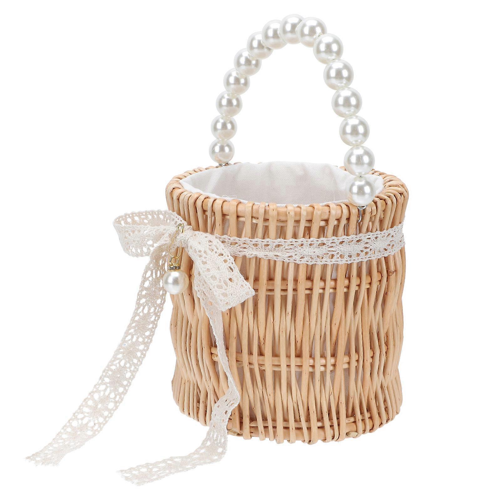 Straw Woven Bag Round Hand-Woven Handbag for Decoration Use 1Pcs