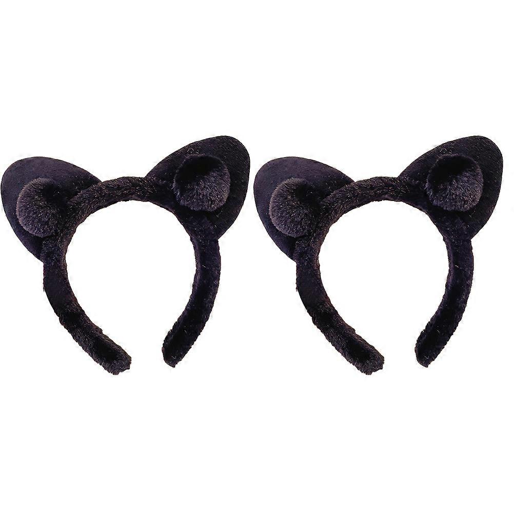 Elastic Hair Hoops Cat Ears Hard Hairband 2Pcs Black Plush Material Bangs-Off Comfort for Decor