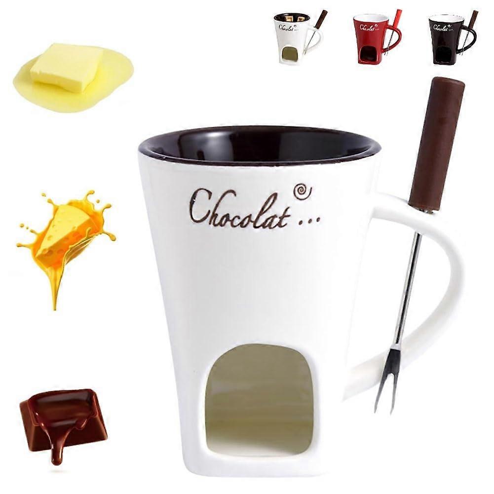 Schmelzbecher Fondue Set, Porcelain Chocolate Fondue Cups with Forks, Ceramic Butter Warmer, Mini Cheese Melting Pot, White
