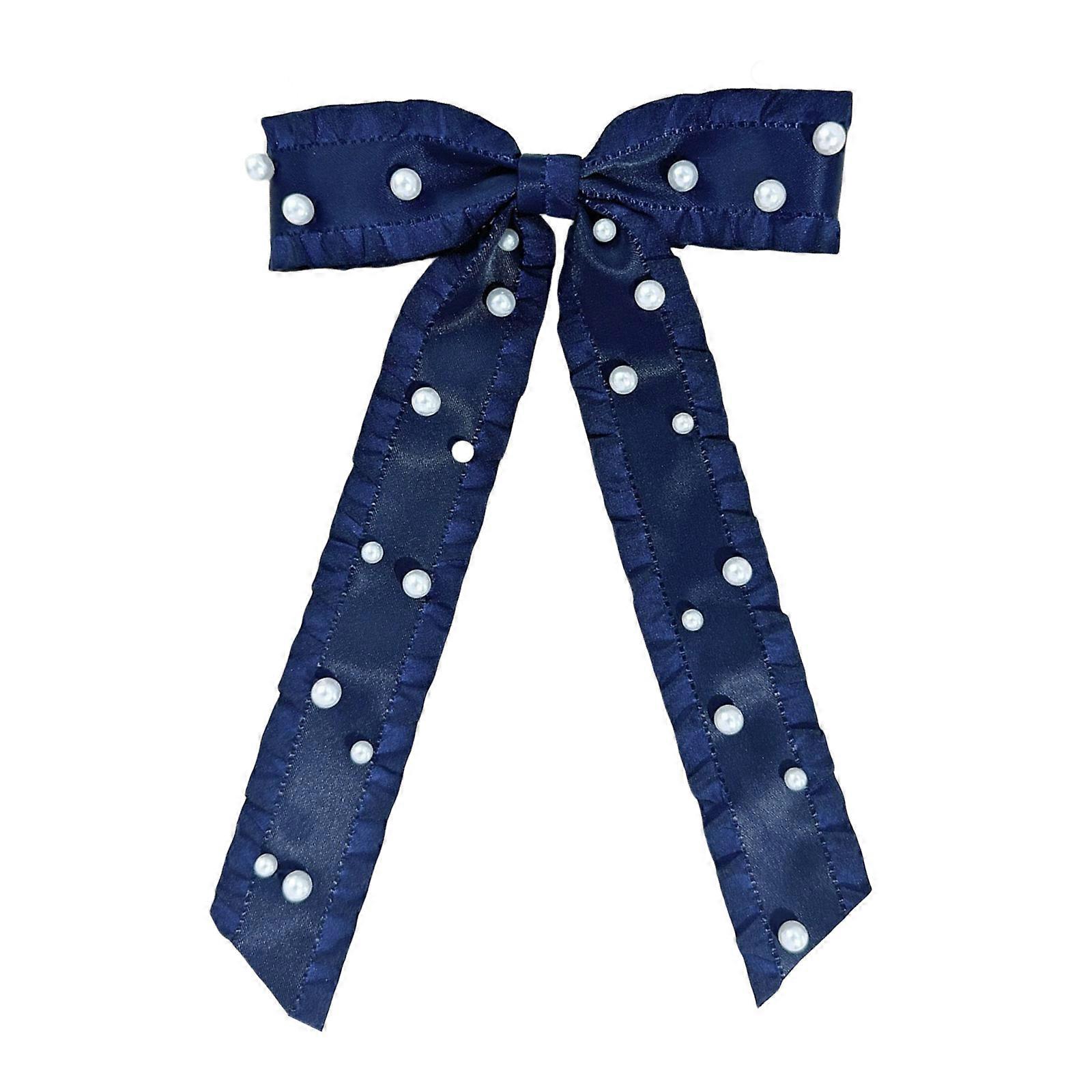 Pearls Ribbon Long Hairpin Shower Barrette Bridesmaids Favors Hairclip Valentines Mother’s Day Decorative Accessories Navy Blue