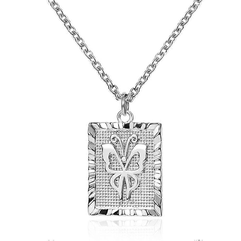 Square Charm Necklace Neck Chain for Decoration One Piece Silver Alloy