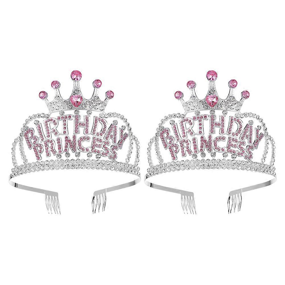 Birthday Tiara Rhinestone Crown Elegant Princess Girls Headband Silver 13.00X9.50X9.50CM Shining Design 2Set