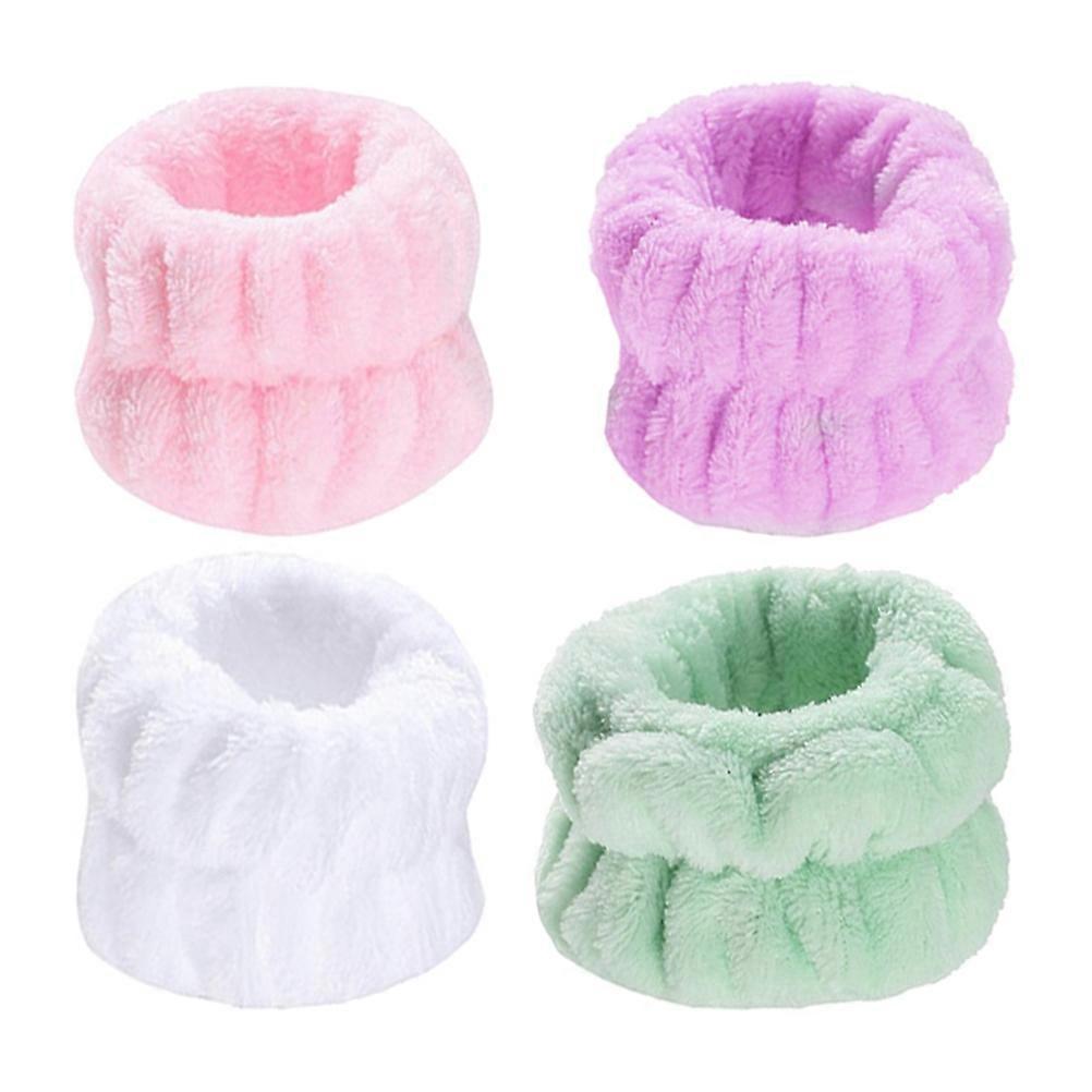 Spa Wrist Bands Plush Wash Towel Bands for Women Prevent Liquid Spreading Pink 4Pairs