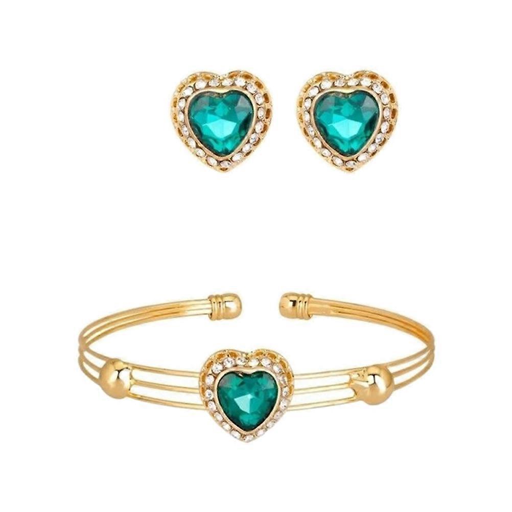 Green Heart Shaped Necklace Jewelry Set with Creative Bracelet 1Set