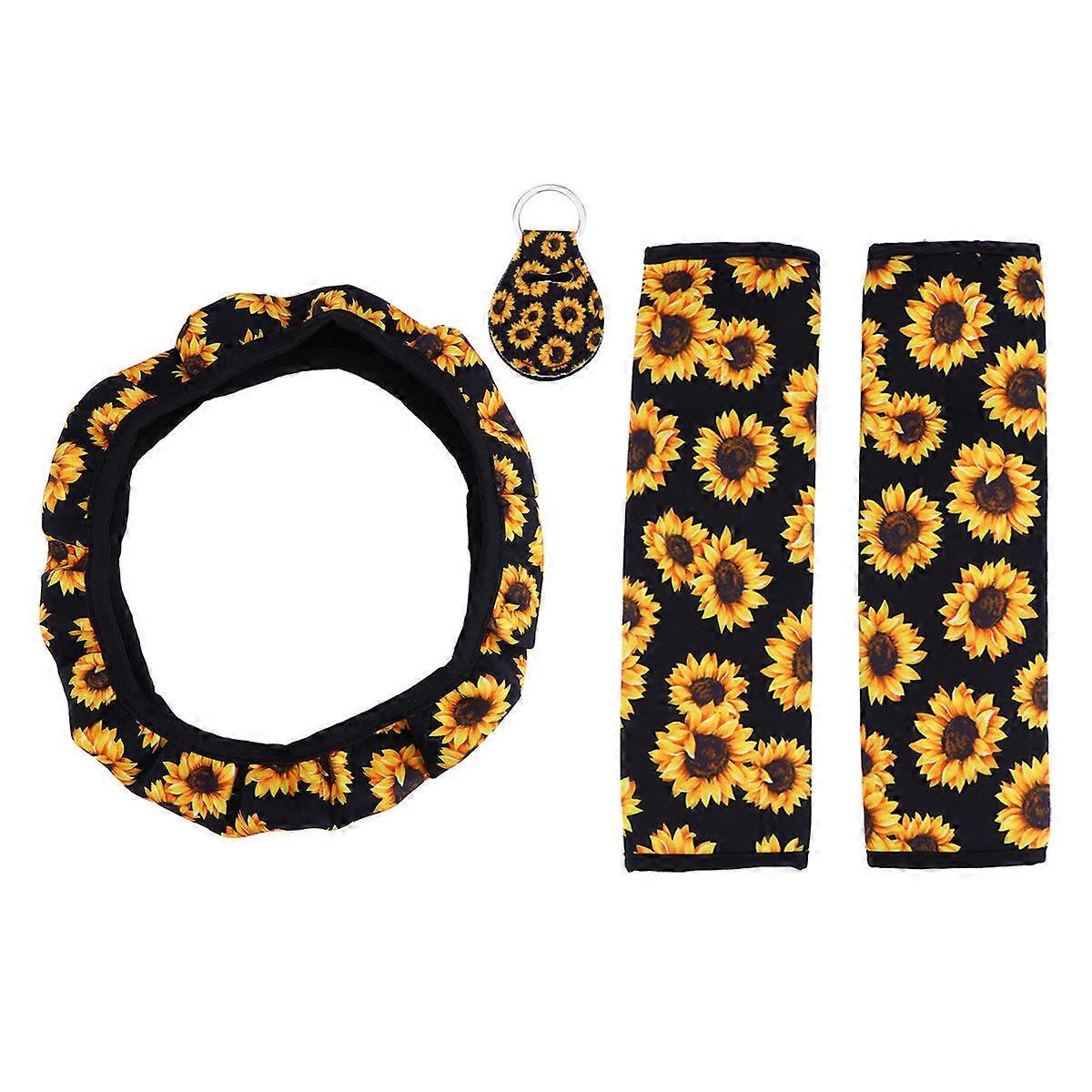 Car Steering Wheel Cover Set 4Pcs Yellow Sunflower Design for Car Owners Easy to Maintain and Sweat Absorbent