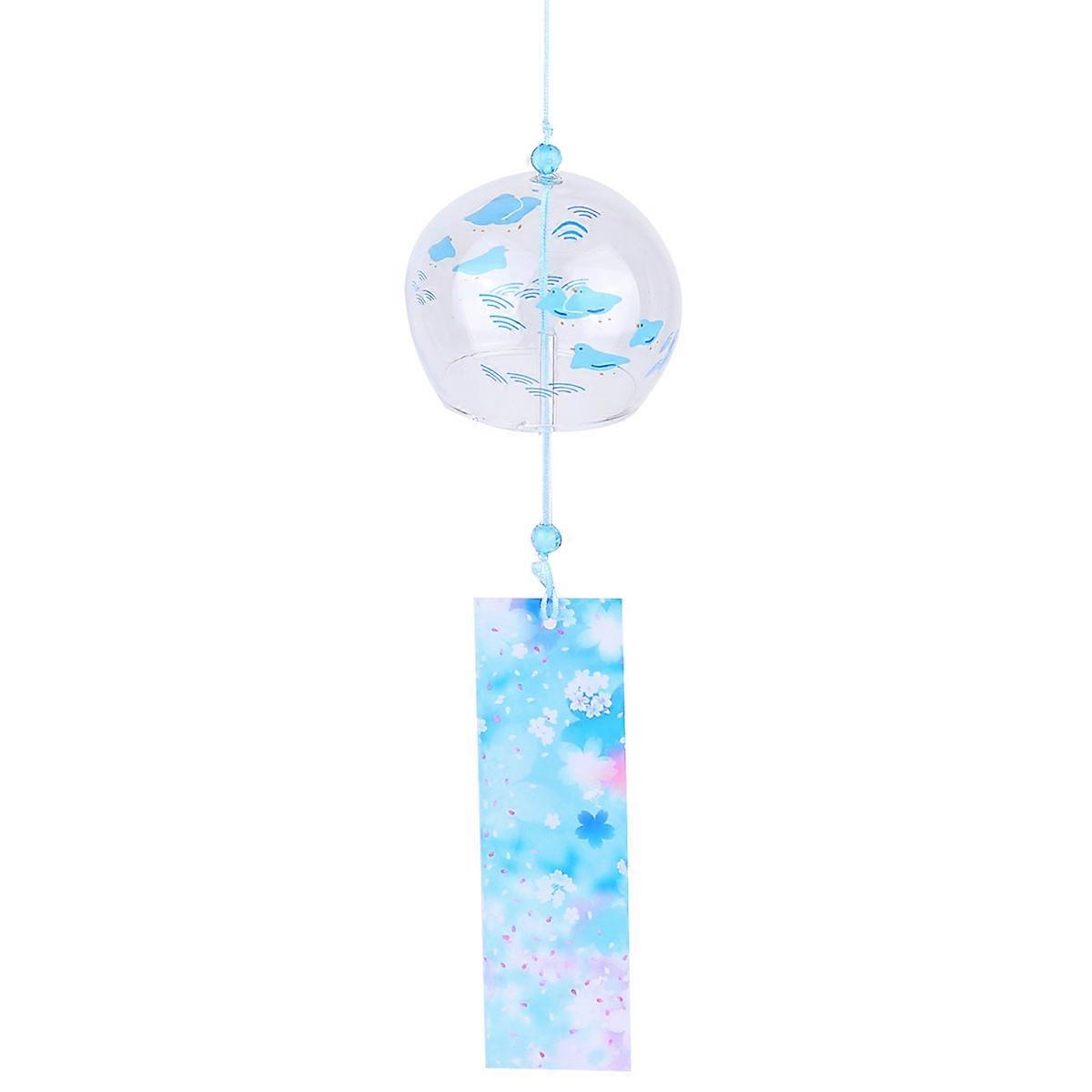 Wind Bell Window Decors Sky-Blue Glass Sound Clear Melodious Sound Decorative Good Luck 42×7.5cm 1Set