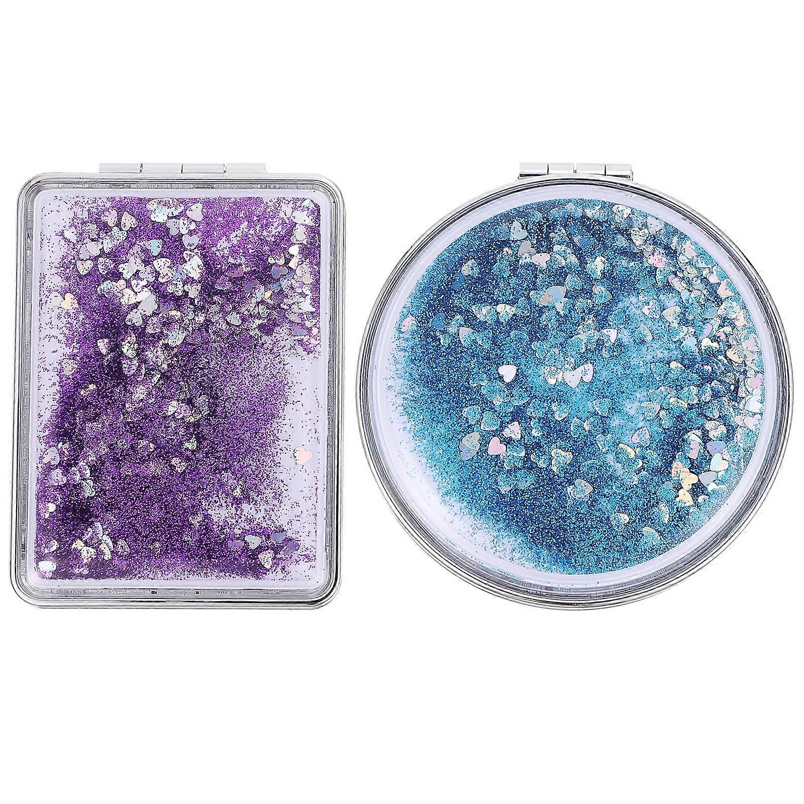 Purse Compact Mirror Round Shape Multi-angle Makeup Checking Portable Business Trip Accessory Blue 2Pcs