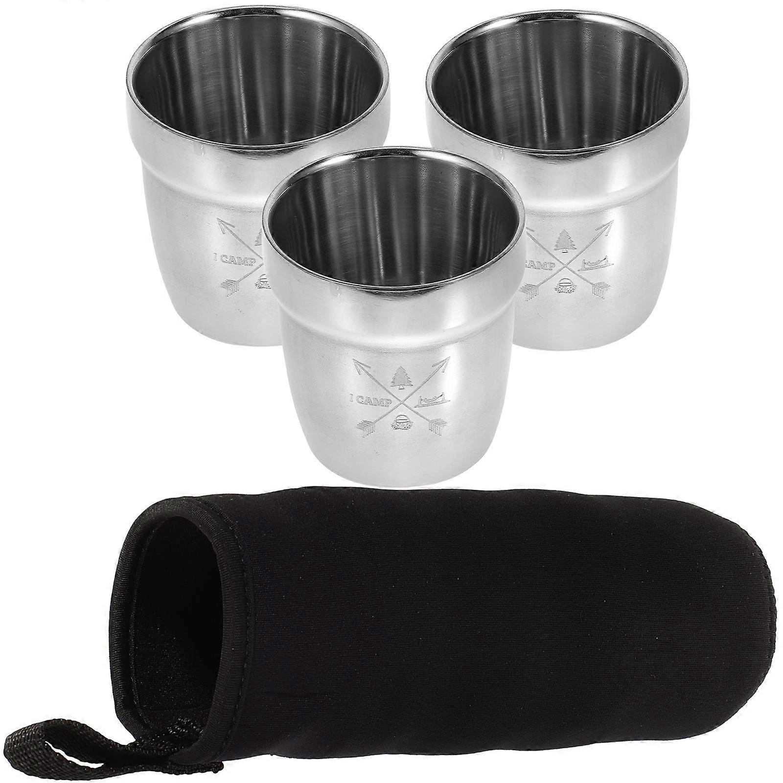Stainless Steel Water Cup Portable Insulating Multi-use Outdoor Activities 7.5x7cm Silver 1Set