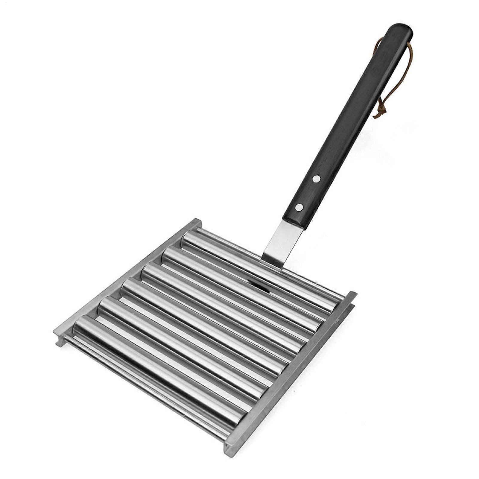 Hot Dog Roller Grill with Wooden Handle, 5 Capacity Stainless Steel Hot Dog Roller for Evenly Cooked Hot Dogs, Ideal for Camping