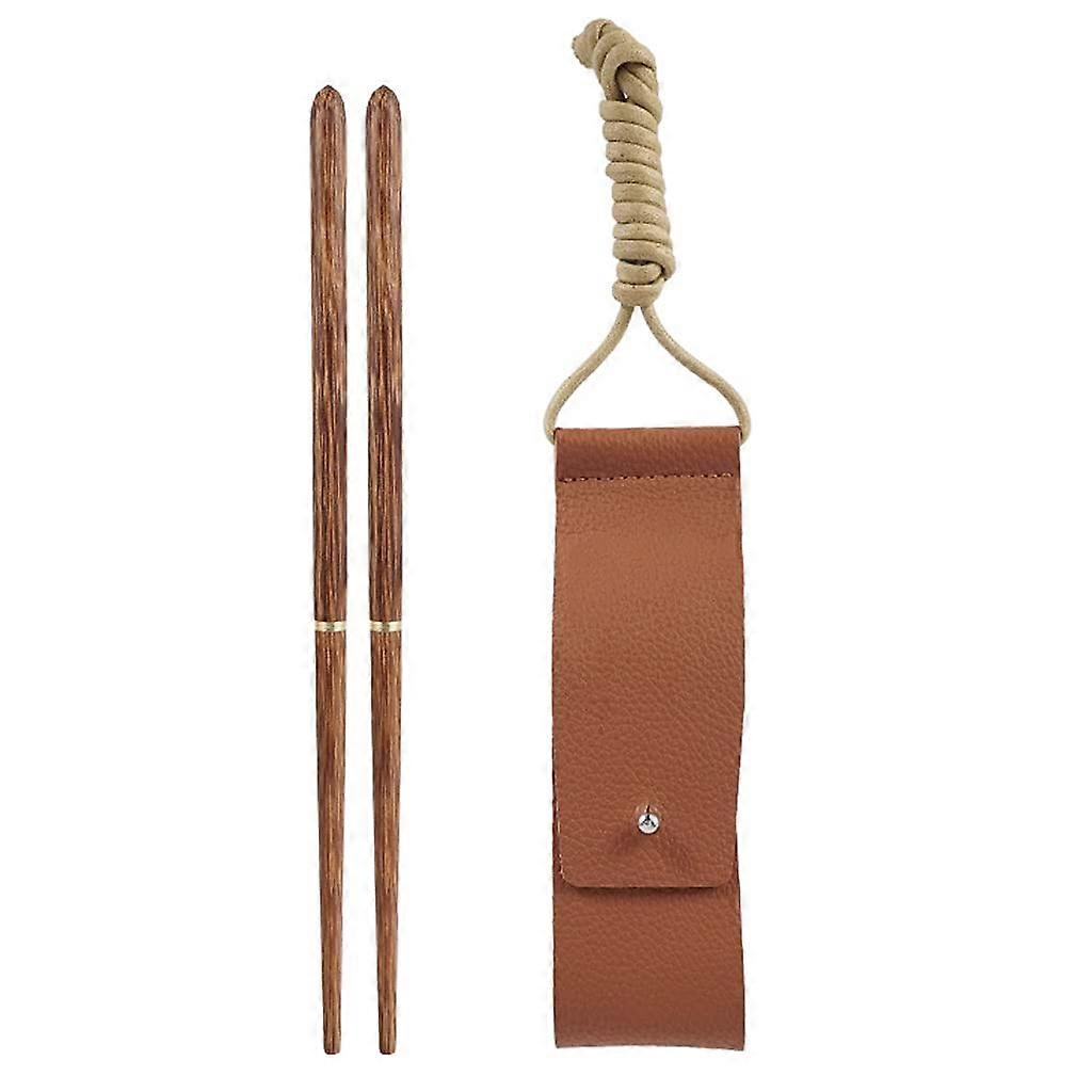 Outdoor Camping Chopstick Storage Set with PU Bag, Wooden Design, Portable for Hiking and Travel