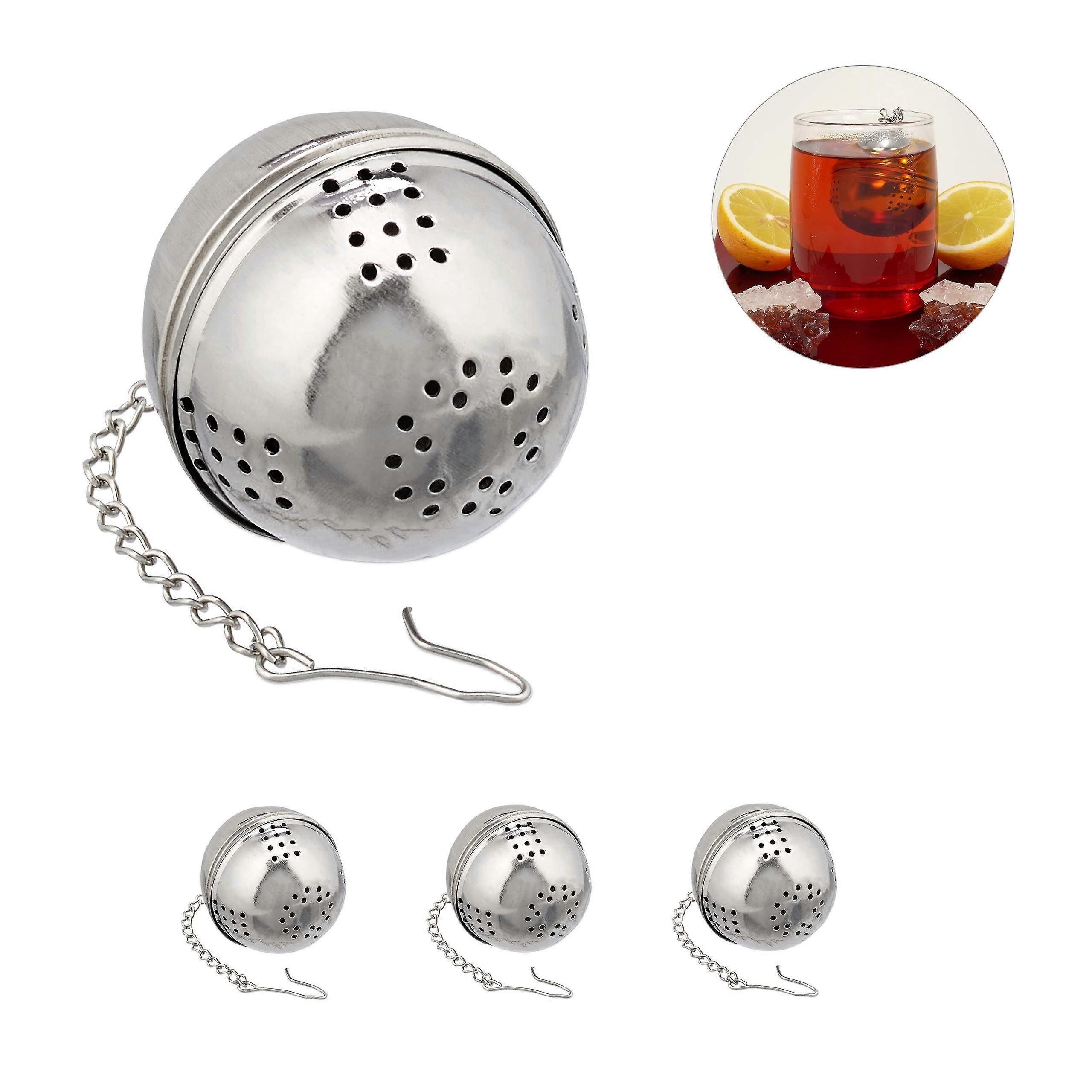 Tea Infuser Set of 4, Stainless Steel Ball Tea Strainer for Loose Leaf Tea, 4 cm Diameter with Chain and Hook, Silver