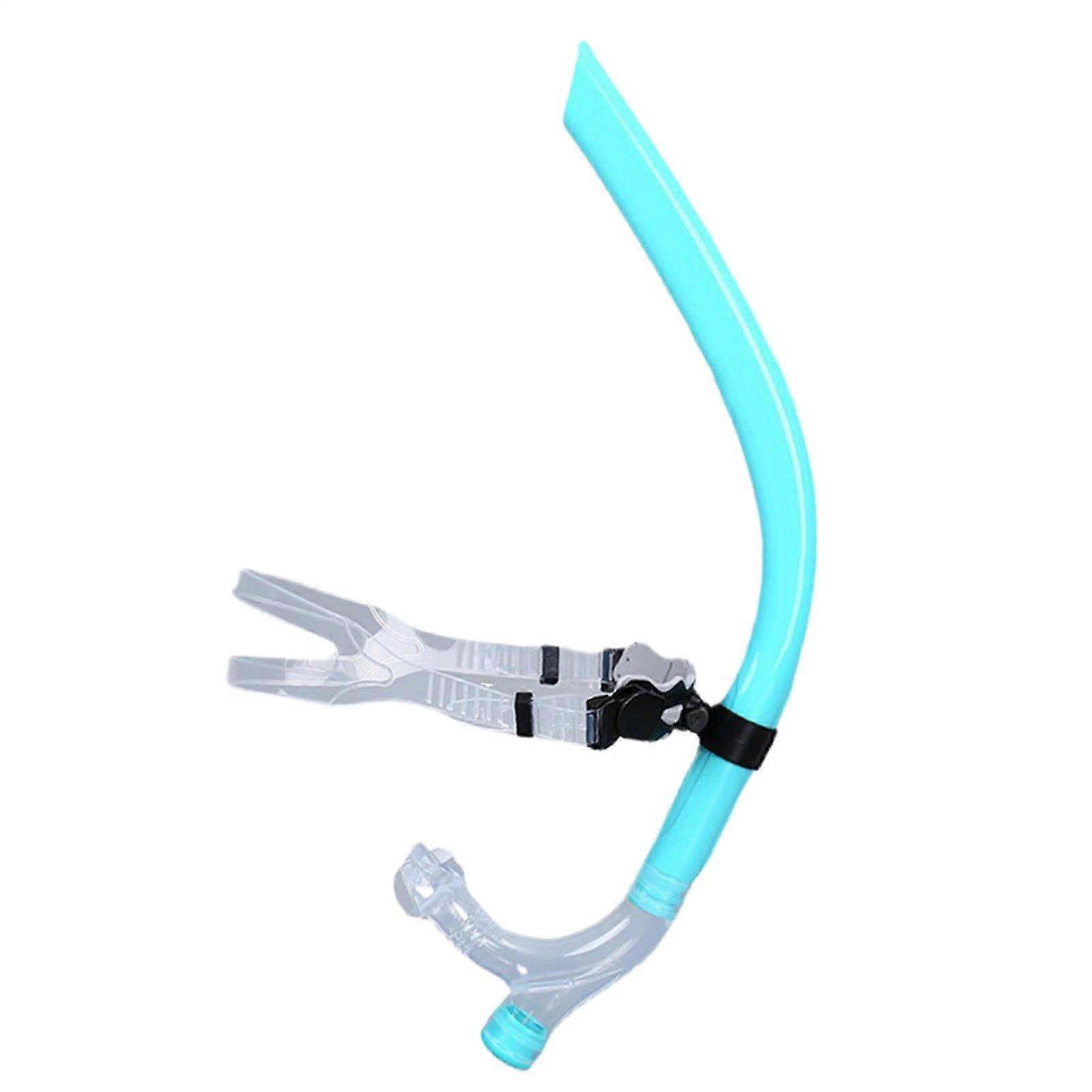 Swimming Breathing Tube Dry-Top Snorkel Silicone Mouthpiece Head Strap Middle Bracket Training Tube Unisex Cyan Blue