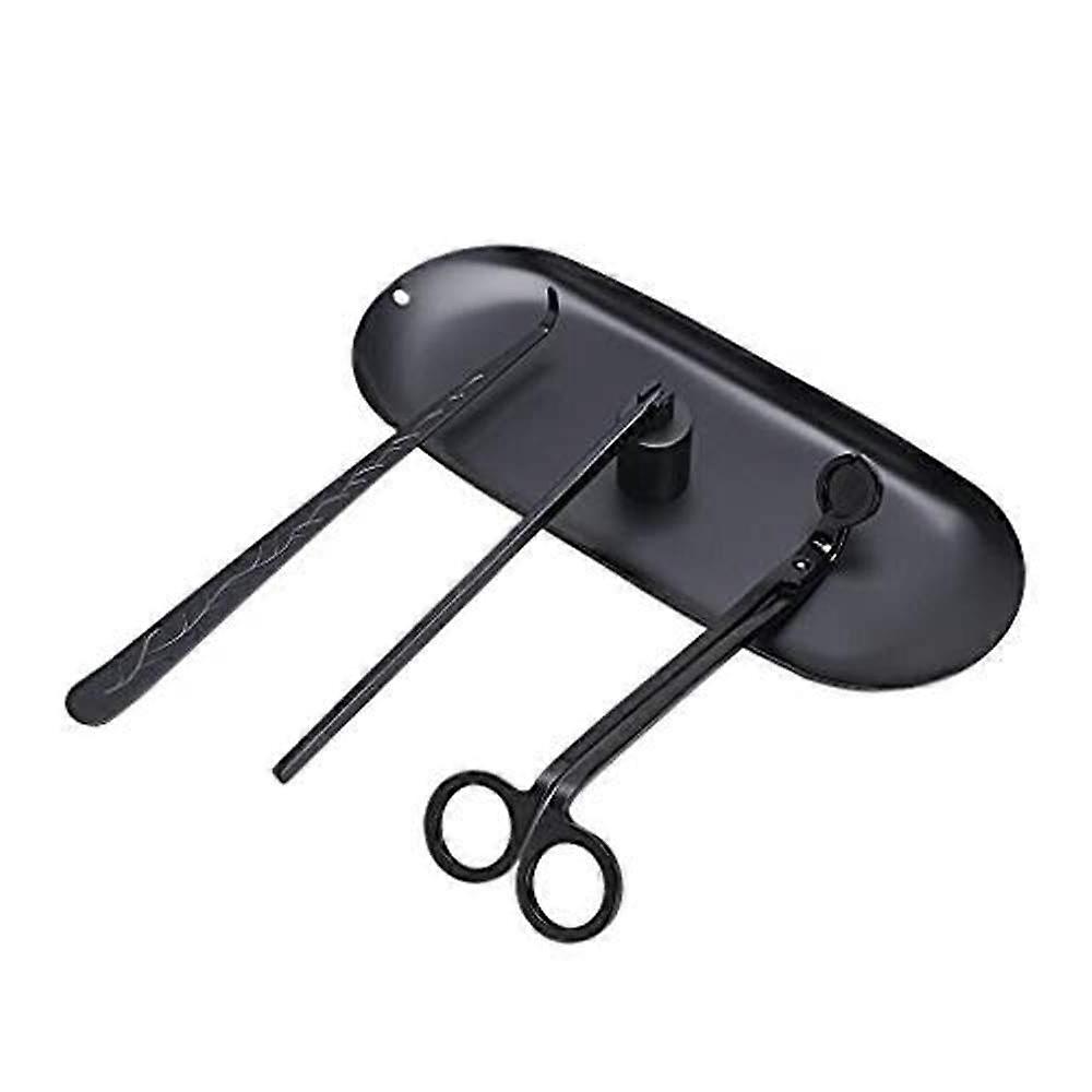 Stainless Steel Candle Accessory Set With Candle Wicks, Trimmer, Snuffer, Storage Bowl, Black