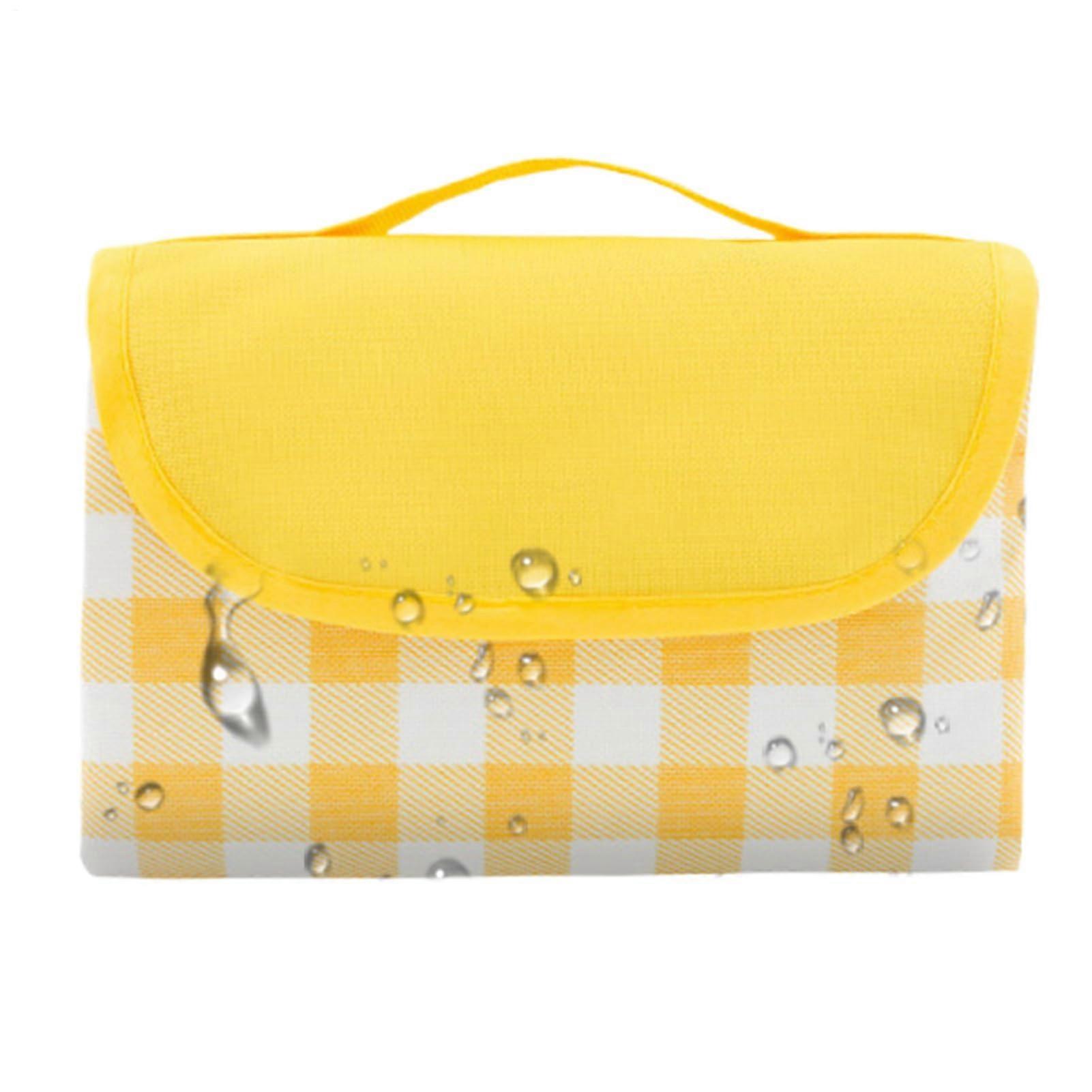 Picnic Blanket Waterproof Outdoor Foldable Beach Mat, Sand-Resistant, Lightweight, Yellow, Family Picnic Accessory