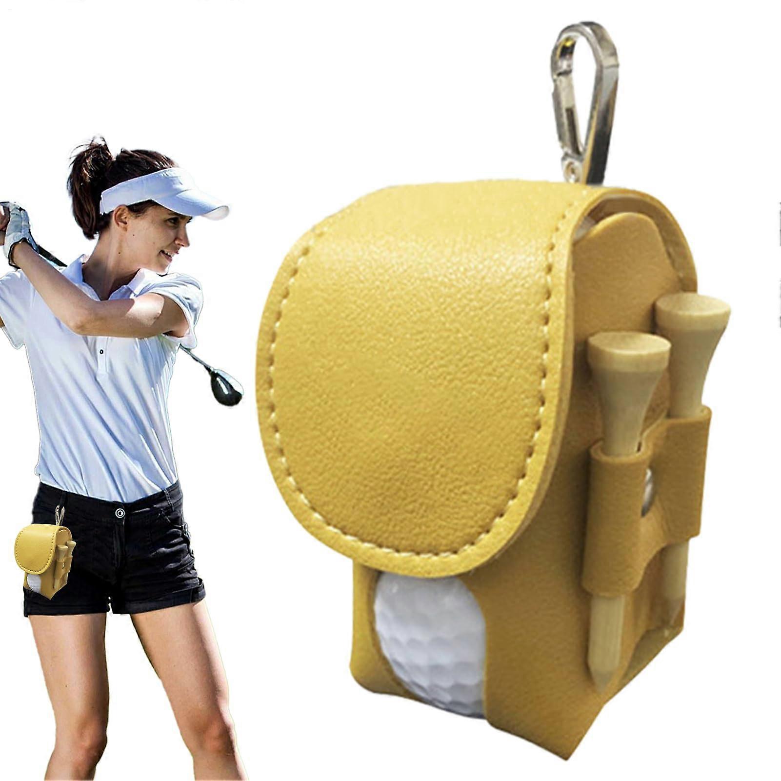 Golf Ball Bag PU Leather Belt Tee Holder With Clip And Carry Handle Golf Ball Organizer Portable For Women And Men Yellow