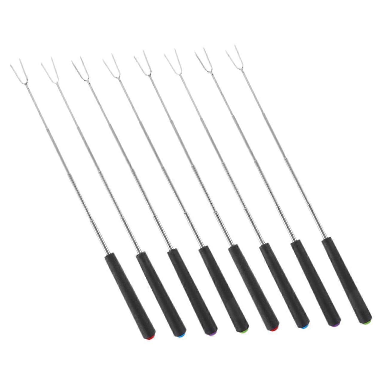 8-Piece Grill Fork Camping Cooking Set, Extendable Fondue Sticks, Stainless Steel Skewers for Outdoor Fire Pit Cooking