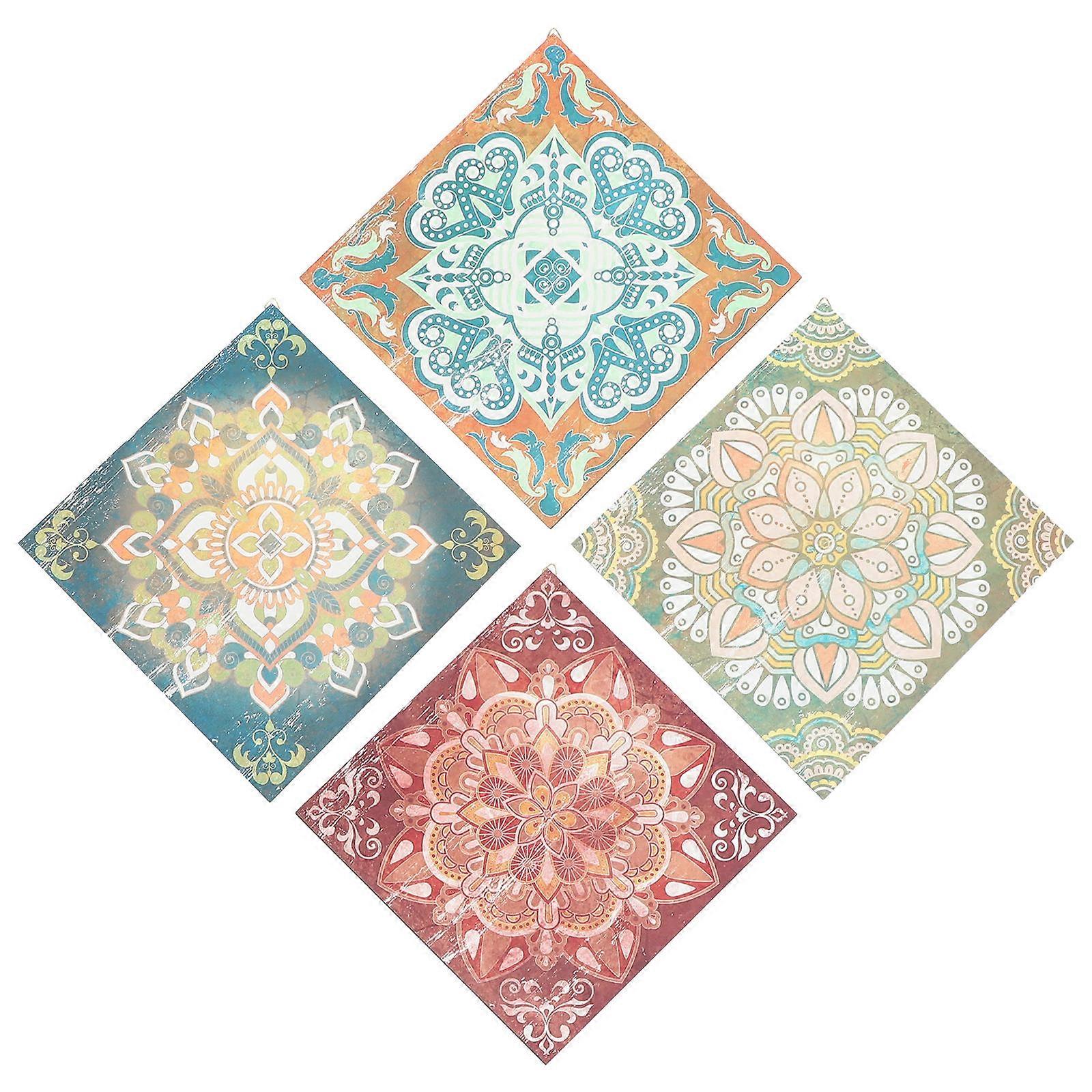 Living Room Wall Decor Rustic Wall Wooden Board Home Decoration Square 11.8×11.8×0.2in 4Pack