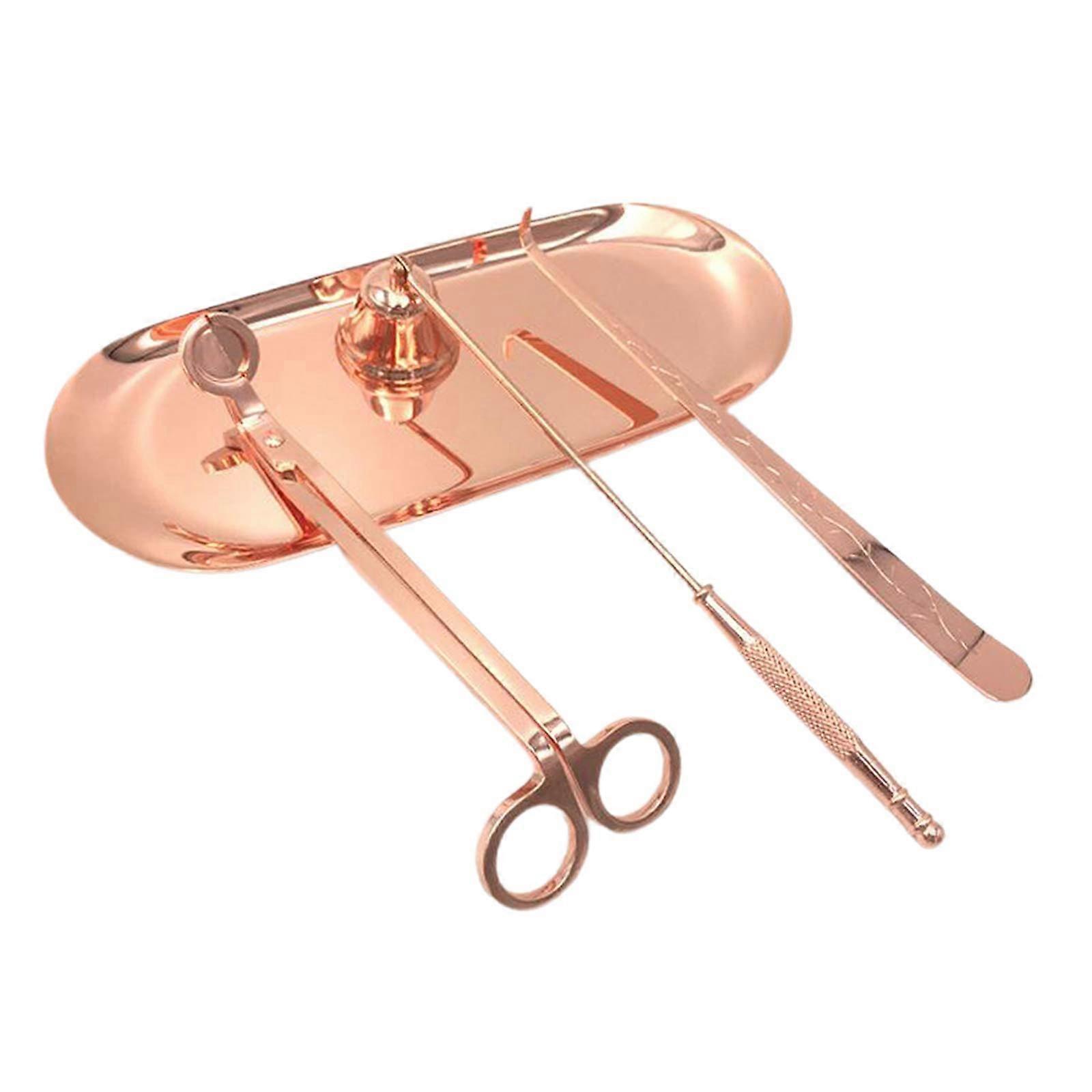 4-in-1 Candle Accessory Set Stainless Steel Wick Scissors Candle Snuffer Wick Spoon With Tray Rose Gold