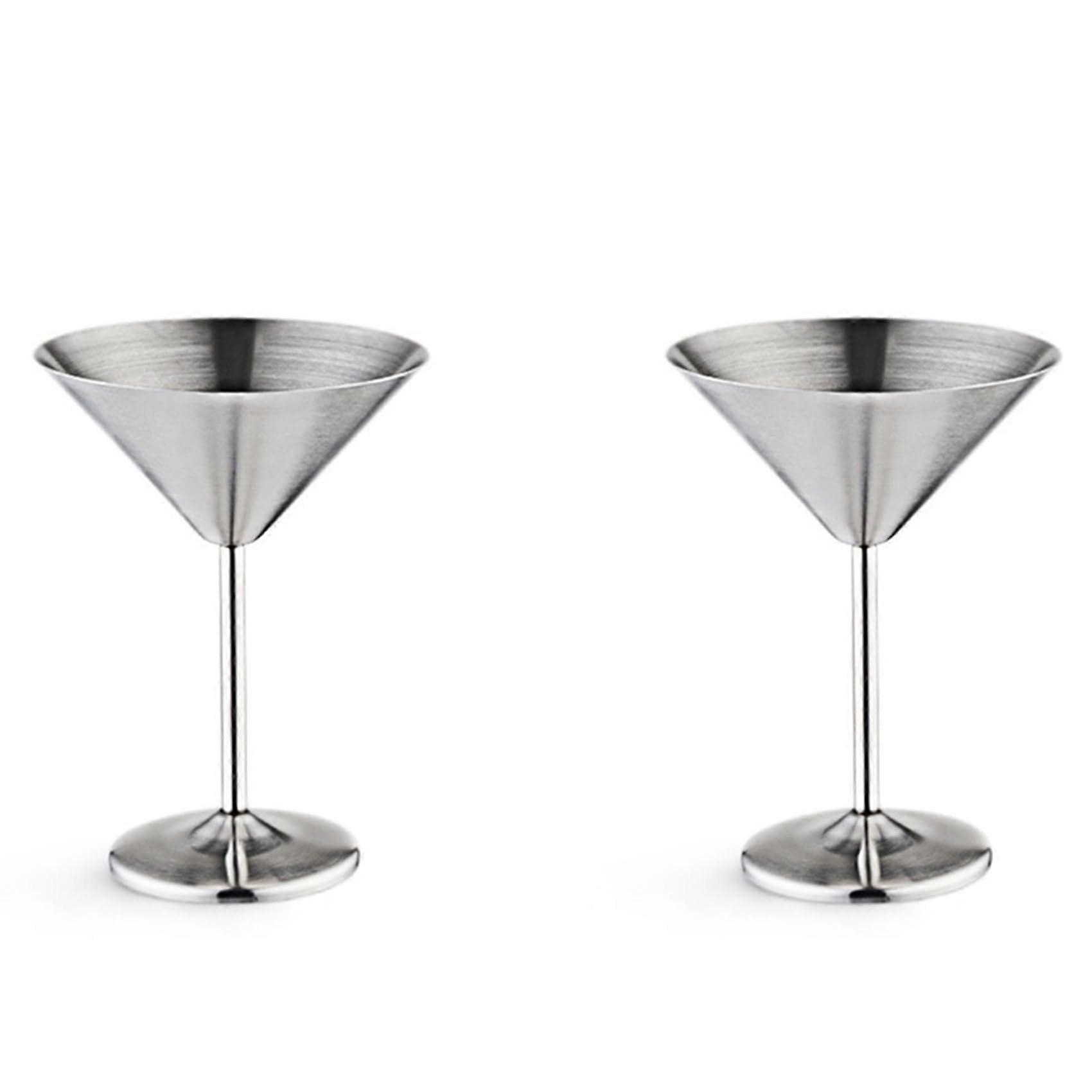 Stainless Steel Martini Cocktail Glass Set Of 2 - High Base, Unbreakable, Silver Bar Wine And Champagne Glass