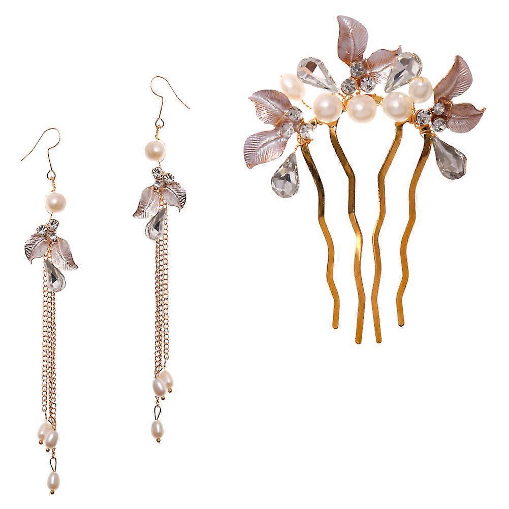 Leaf Hair Comb and Earrings Set 3Pcs for Women Wedding Bridal Use