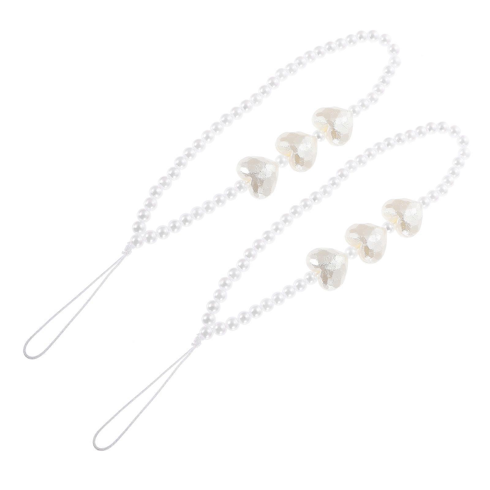 Phone Chain Pearl Lanyard for Decoration 2Pcs White Wrist Strap