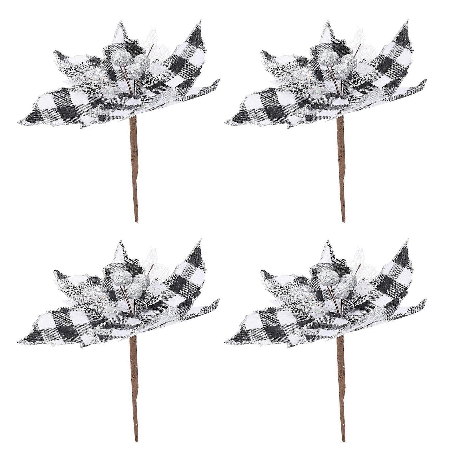 Christmas Tree Glitter Flower Ornaments for Decoration 4Pcs Black Cloth