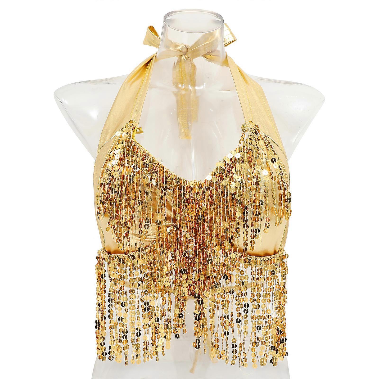 Sequin Dance Costumes Style Golden Color Women Dancers Belly Dance 1Pcs