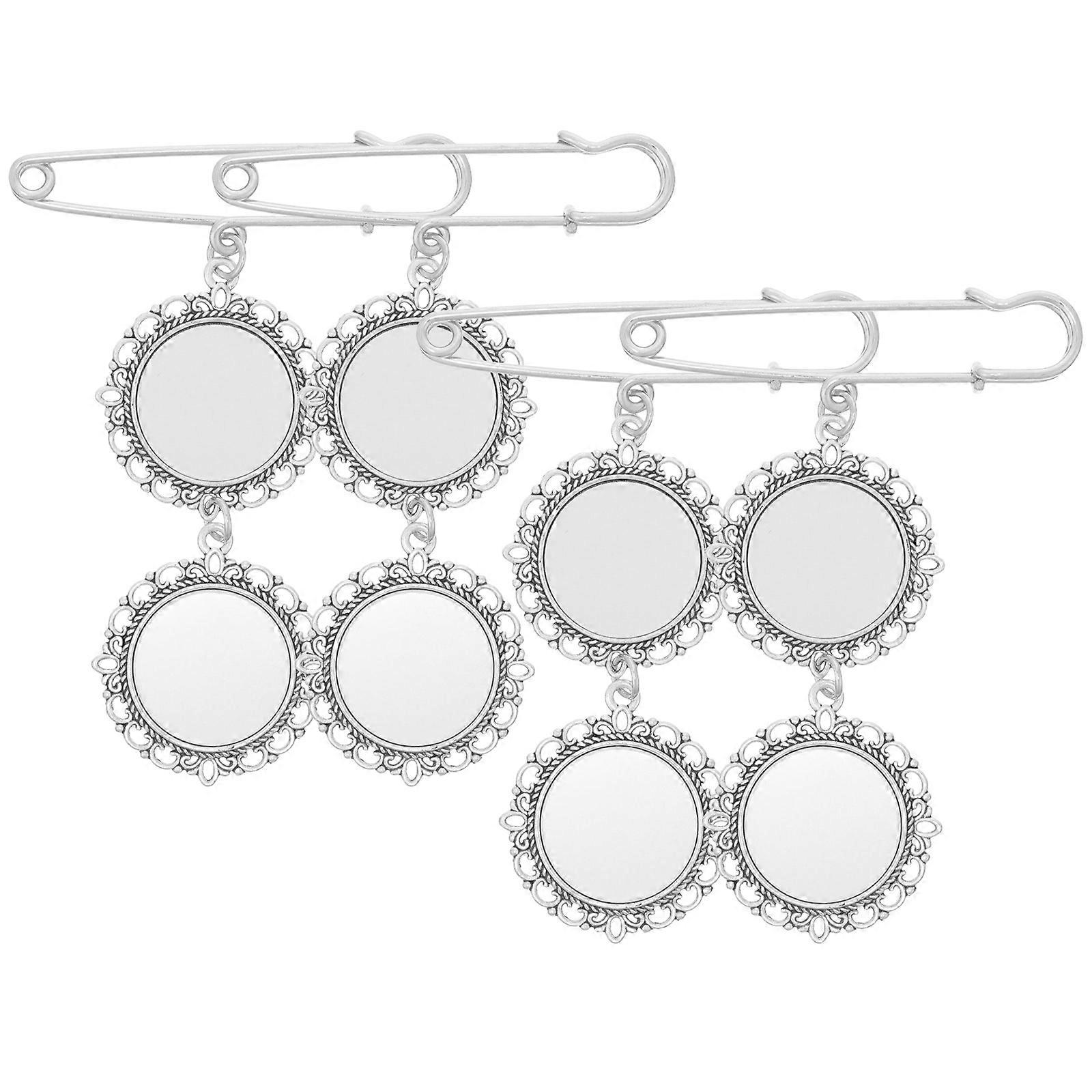Heat Transfer Brooches Diy Decorative Brooch Zinc Alloy Round Blank Picture Frame Design For Clothes Backpacks Bags Dress Hats 4Pack