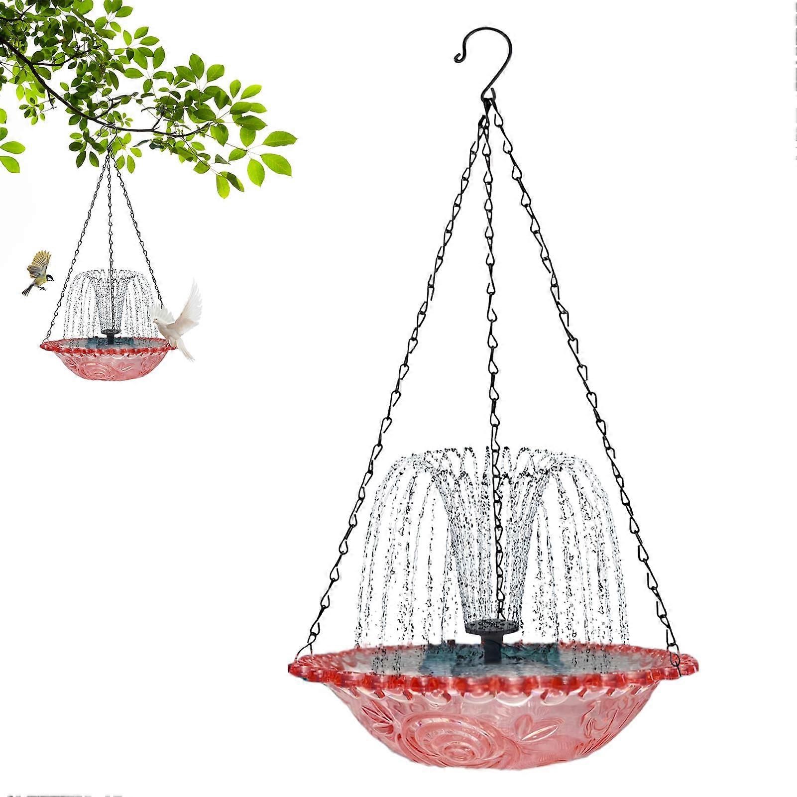 Solar-Powered Bird Water Fountain, Hanging Bird Bath For Hummingbirds, Garden/Outdoor Patio, Pink