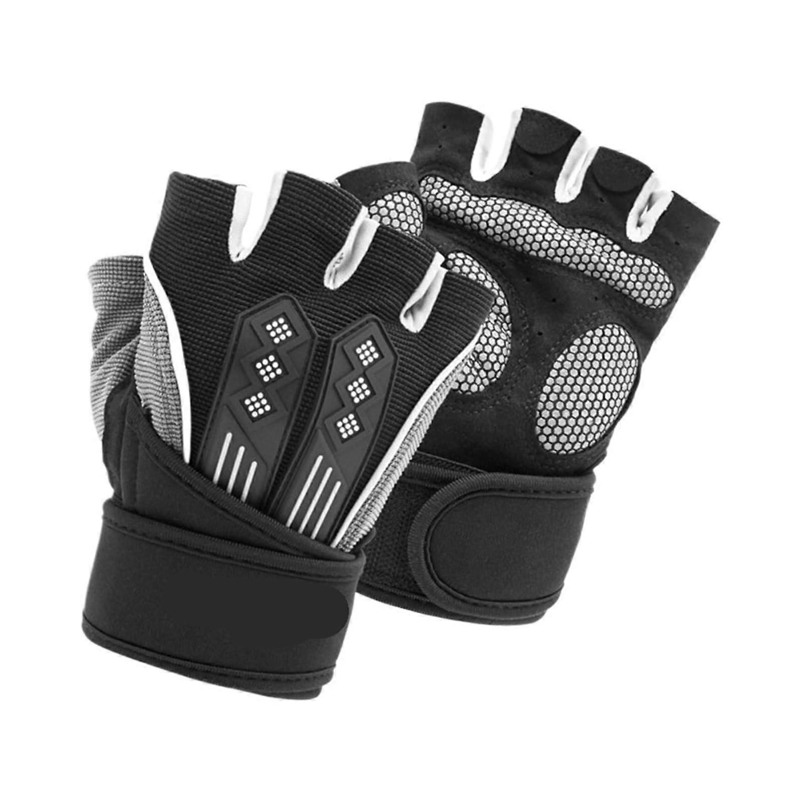 Fitness Gloves Shockproof Pad Cycling Gloves, Half Finger Sports Gloves for Men and Women, Summer Use, White, Size L
