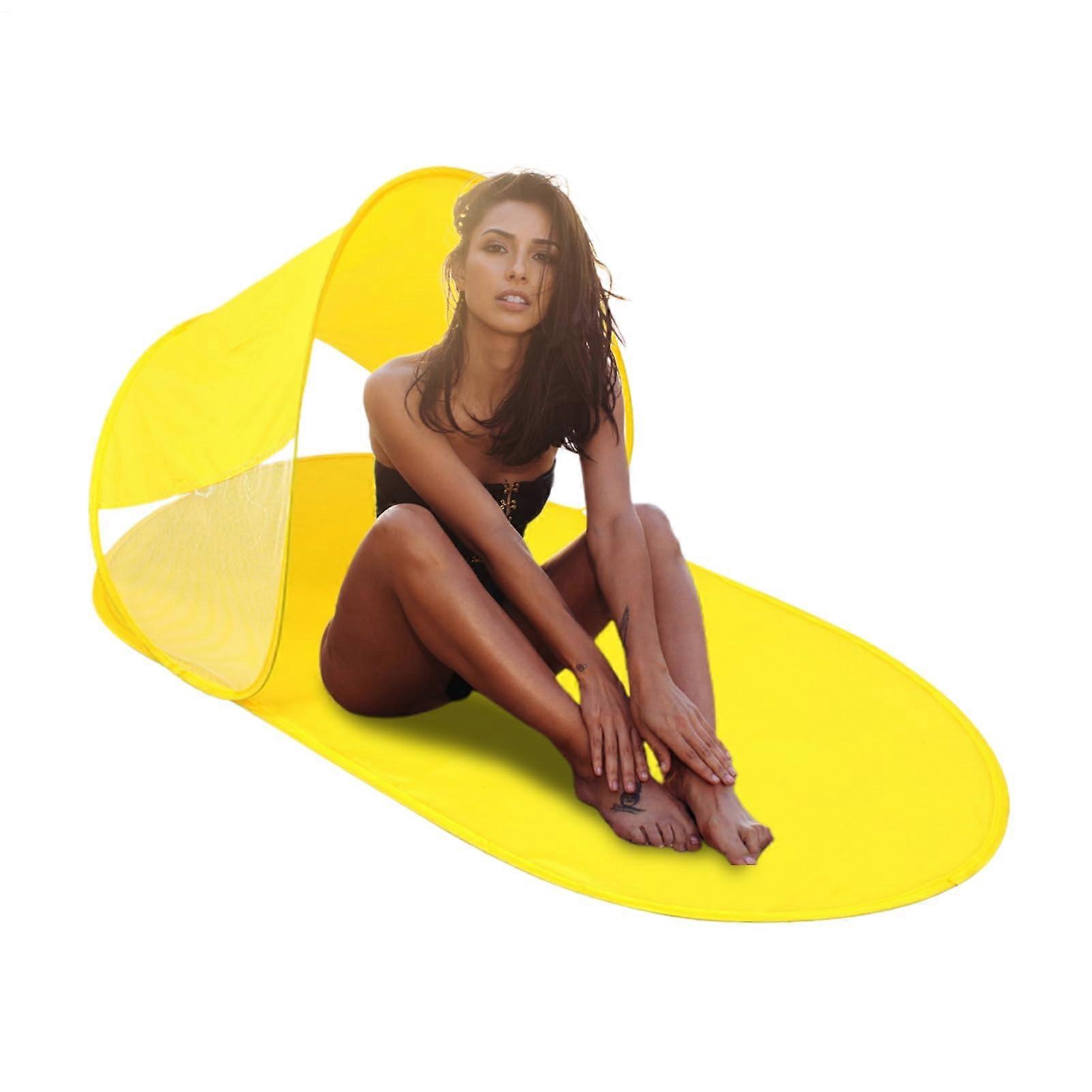 Foldable Outdoor Parasol Beach Tent | Easy Popup UV Protection Sun Shade | Wind Resistant Family Beach Tent | Yellow