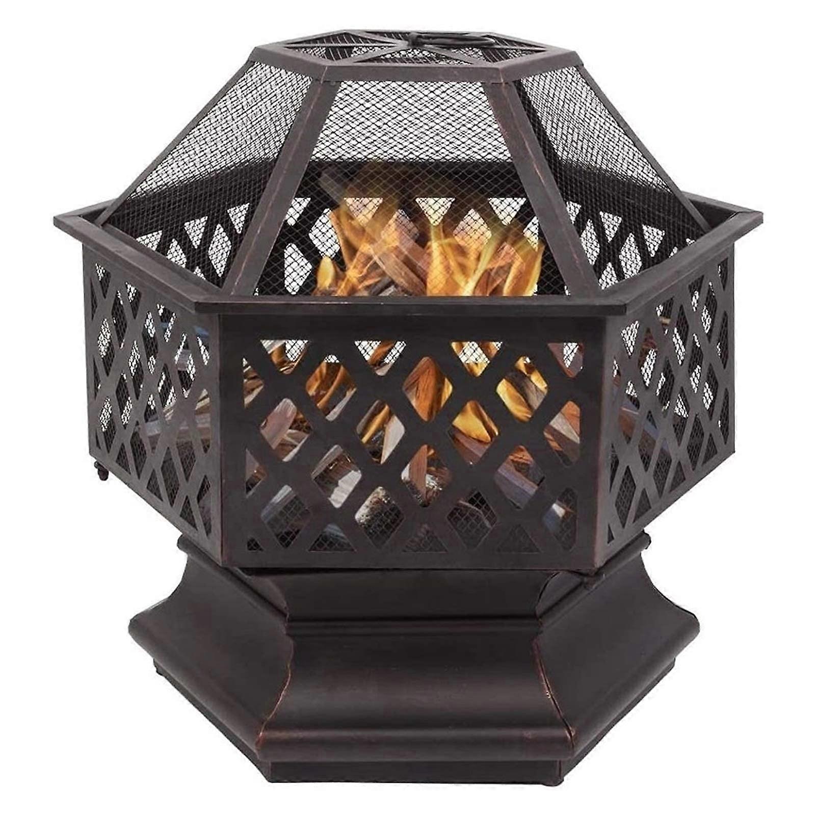 Steel Fire Pit, Outdoor Fire Bowl for Garden and Patio, Fire Pit with Mesh Cover, Durable Backyard Heating Solution