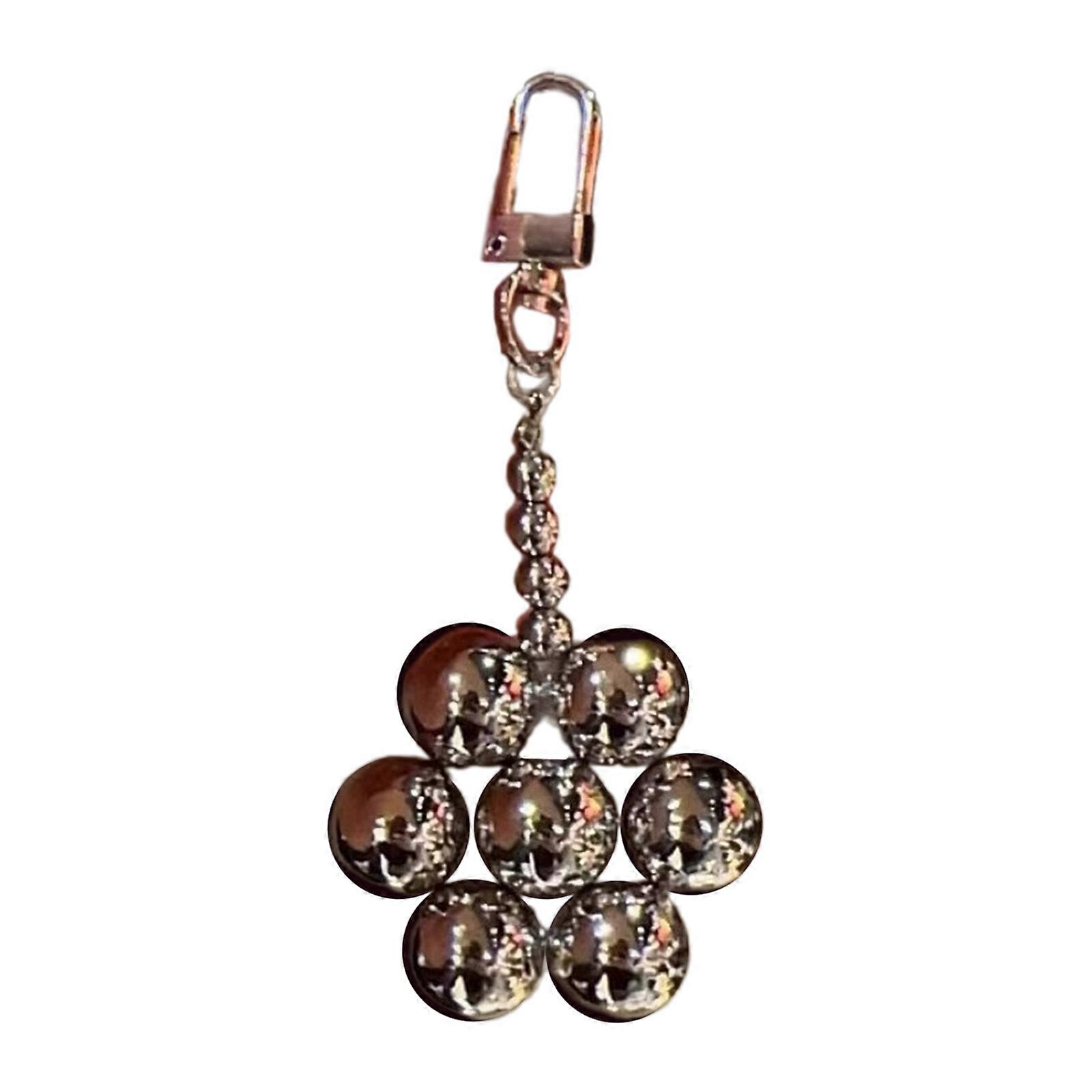 Sophisticated Flower Key Adornment Handmade Flower Keychain Ornament Bead Keyrings for Students and Fashionistas Silver