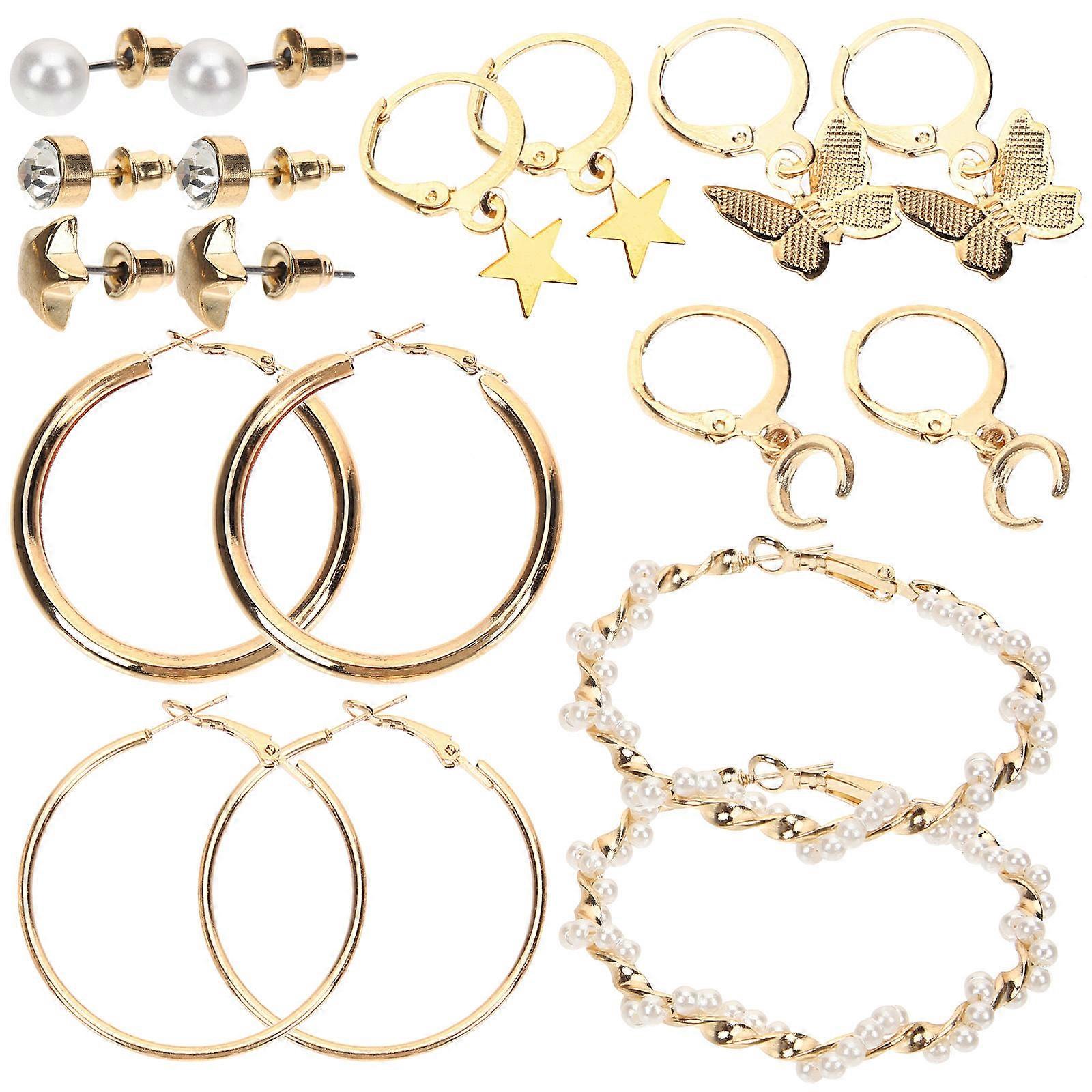 Alloy Retro Pearl Earrings Hoops Earrings for Women 6Pairs Fashion Jewelry