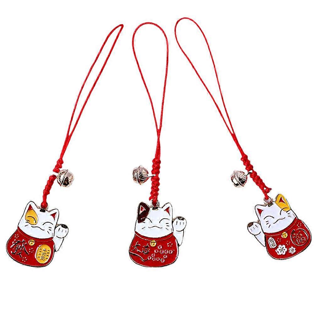 Luck Cat Pendant Japanese Luck Cat Hanging Decor Alloy Material Red Color For Everyday Use And Gift Giving 3Set